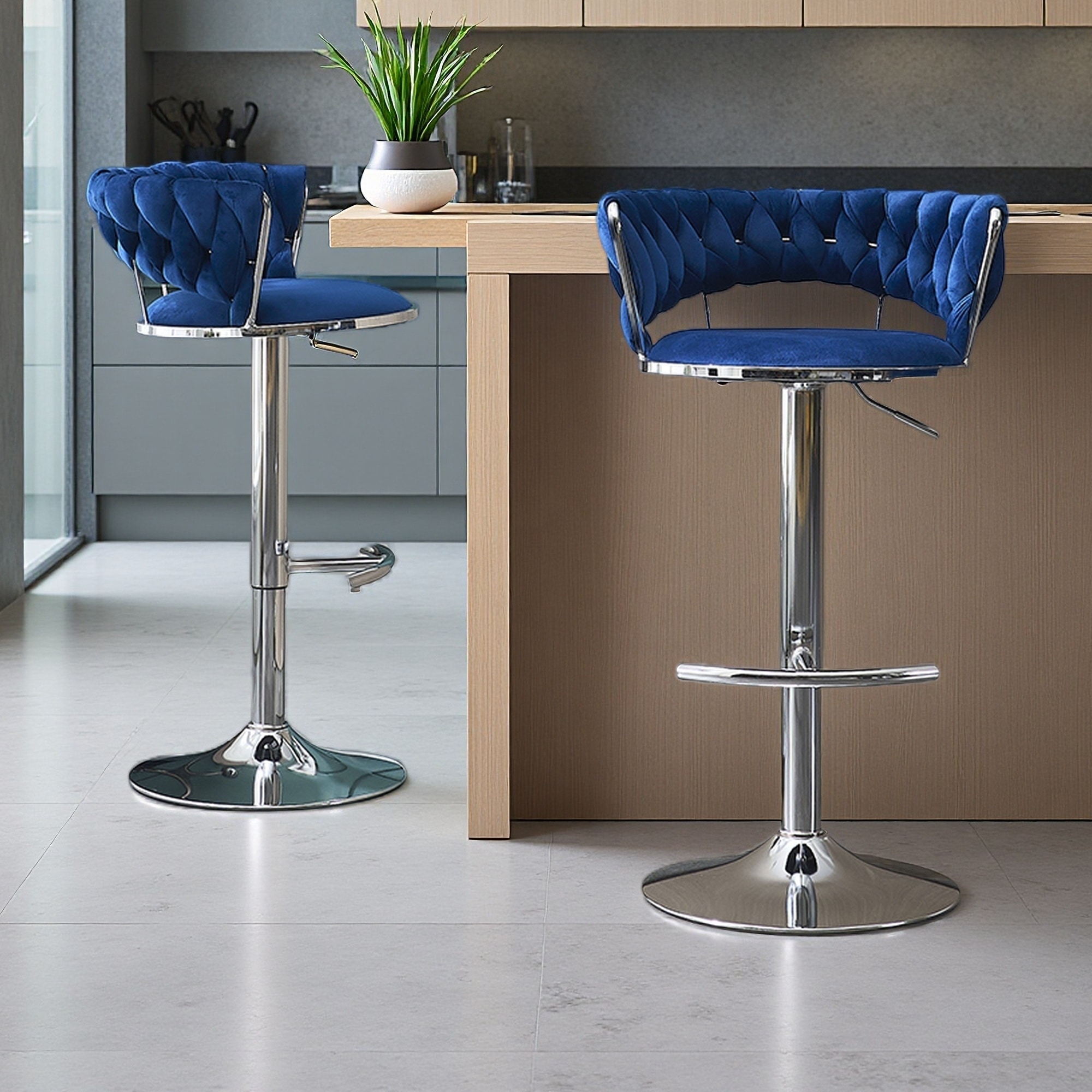 30.7"H Set of 2 Velvet Bar Stools with Chrome Swivel Base & Adjustable Height with Openwork Design & Footrest for Kitchen Island