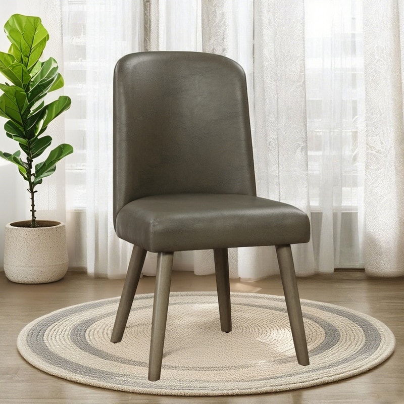 Modern Synthetic/PU Leather with Oak Finish Side Chair, Dining Chair-Grey (Set of 2)
