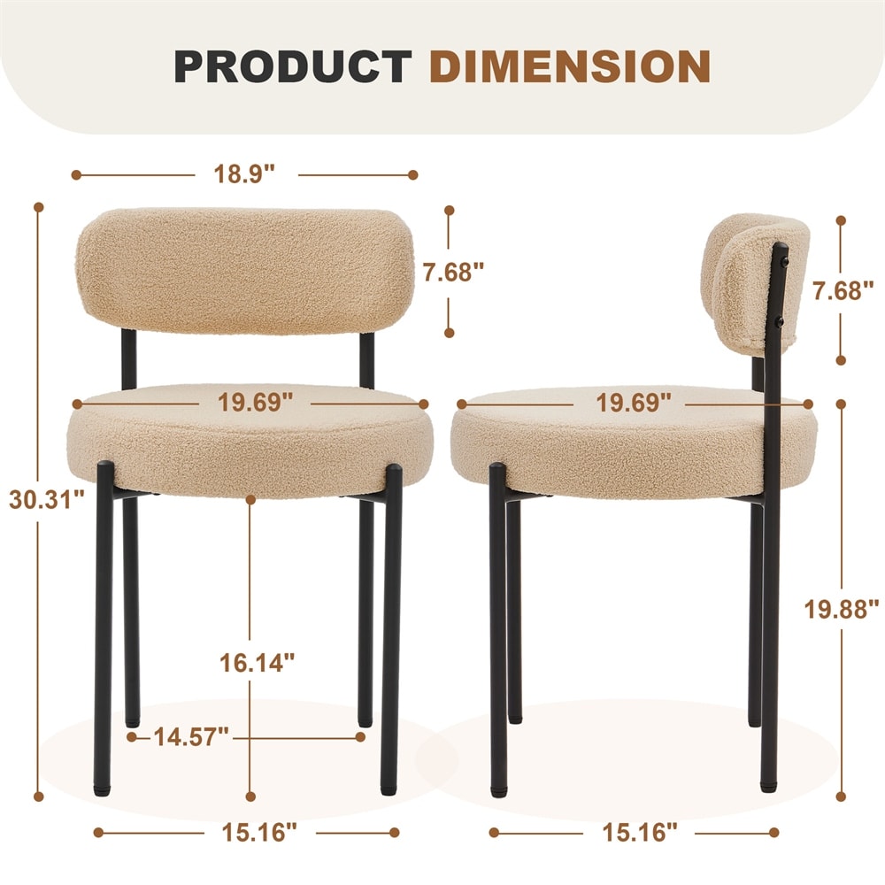 Set of 2 Modern Dining Chairs,with Curved Backrest & Black Metal Legs
