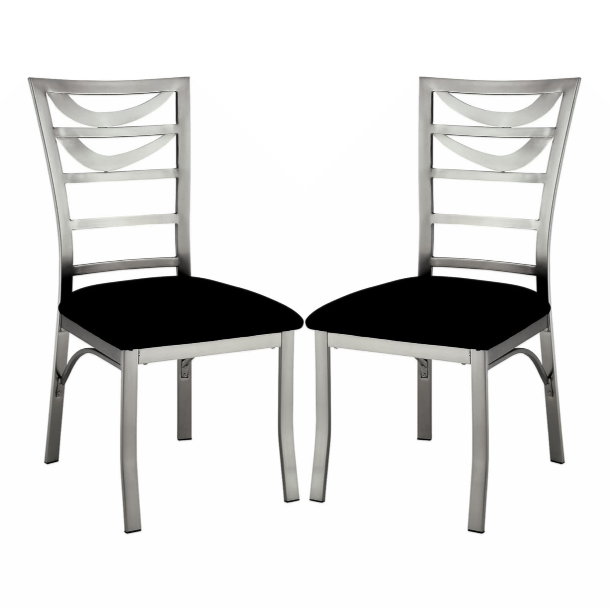 Set of 2 Black Microfiber and Metal Side Chairs in Silver