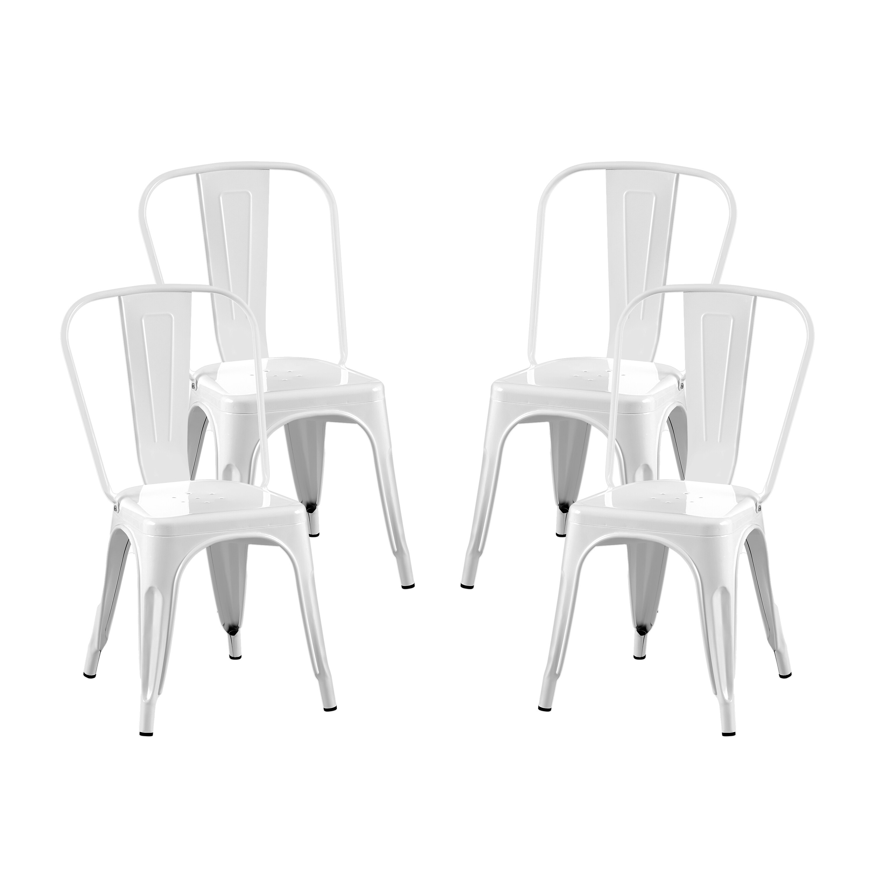 Set of 4 High Gloss Green Industrial Metal Dining Chairs, 18", Stackable, for Kitchen Cafe