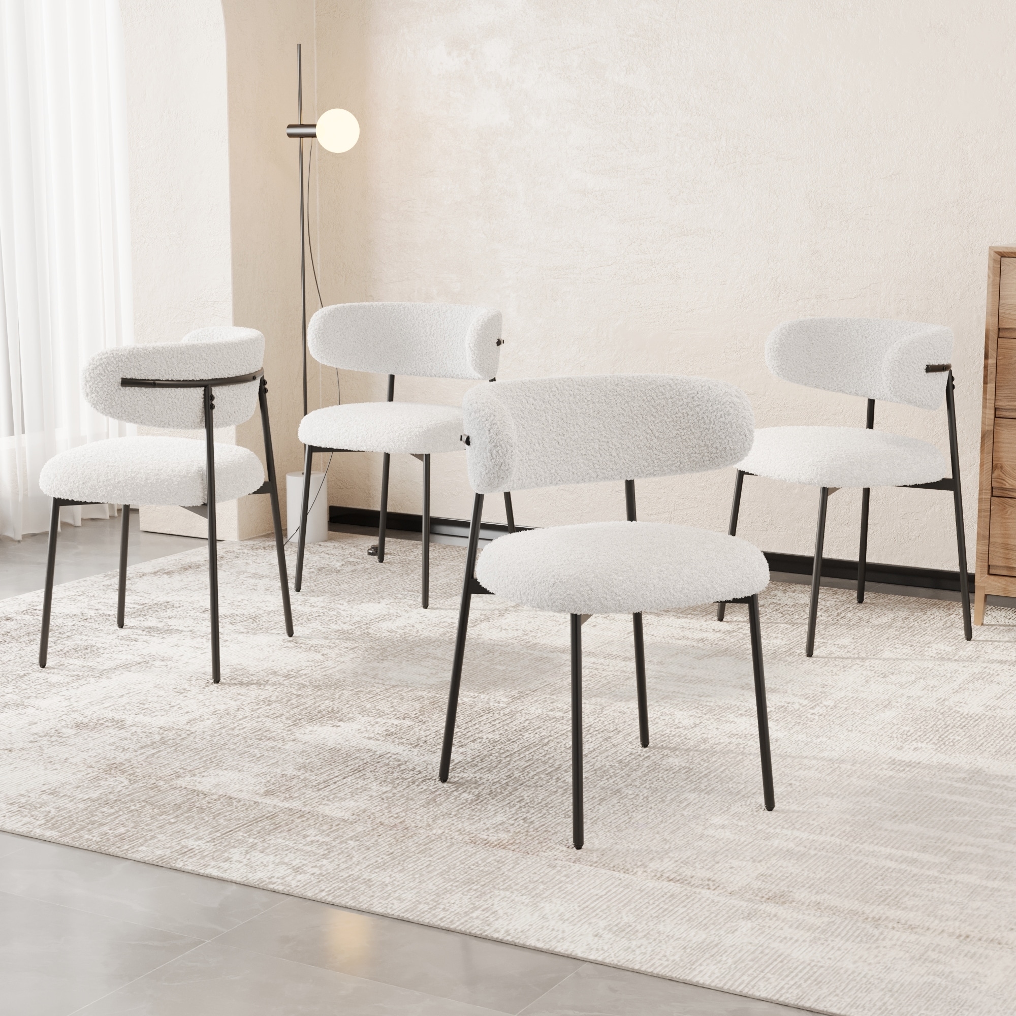 dining chairs set of 4 white , medieval modern dining chairs, teddy velvet chairs with metal legs, kitchen