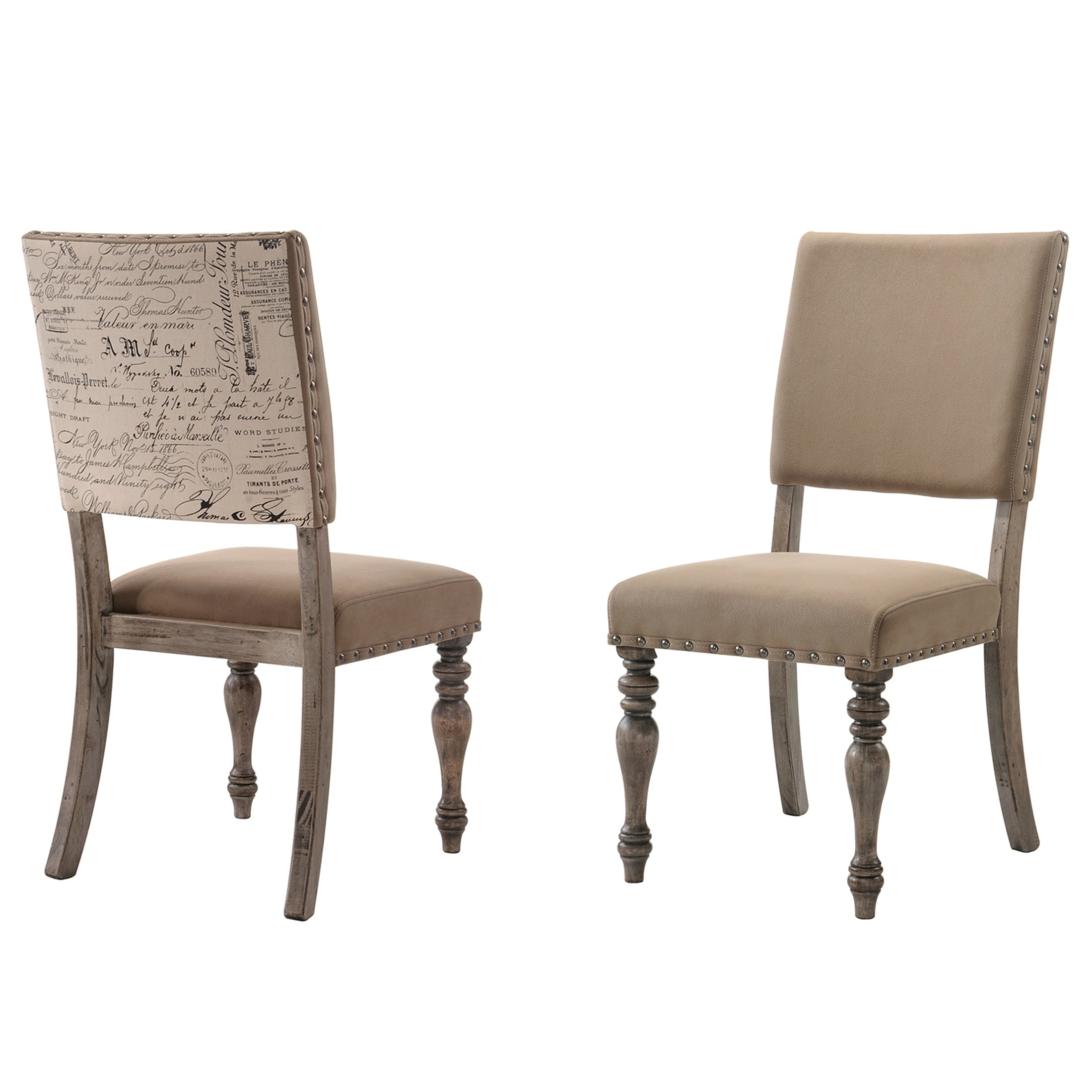 Set of 2 Printed Driftwood Finish Dining Chair with Nail Head