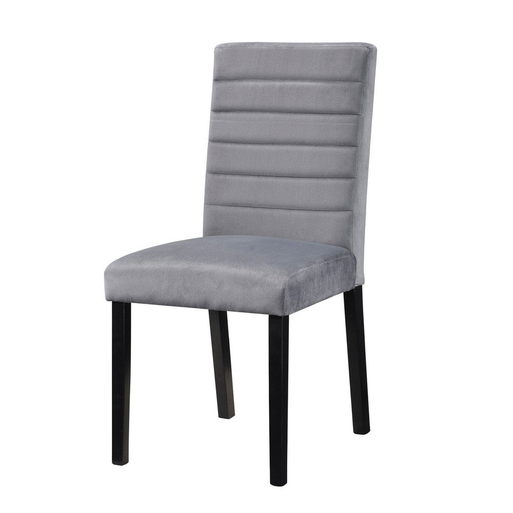 18 Inch Side Dining Chair, Channel Tufted Gray Velvet, Black Wood - 17.5 L x 22.5 W x 35.5 H Inches