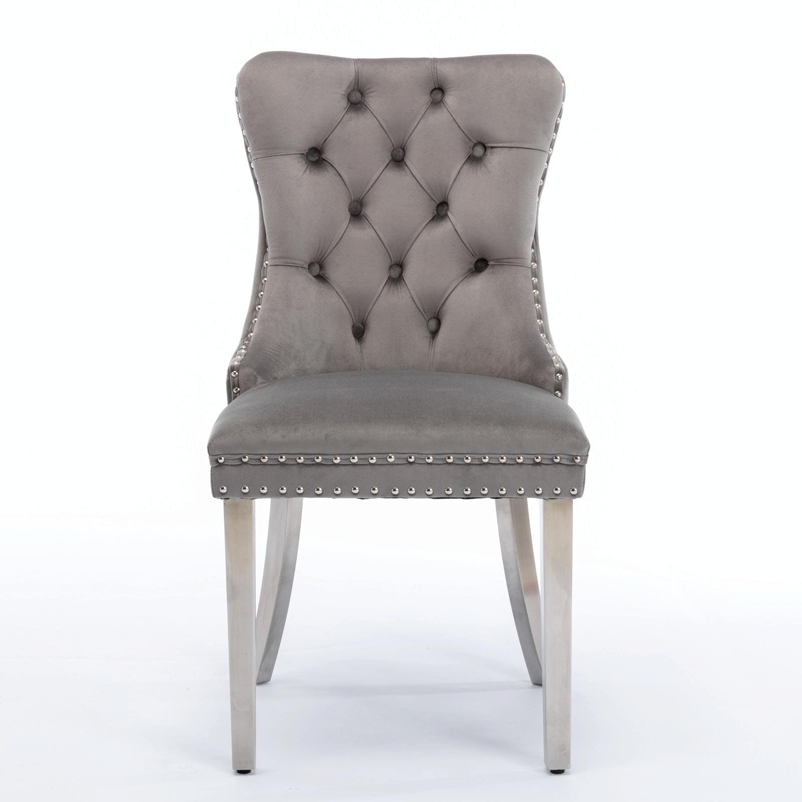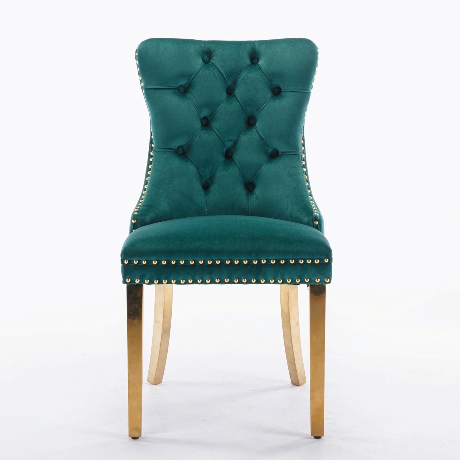 Tufted Velvet Dining Chairs - Solid Wood - Golden Stainless Steel Legs - Nailhead Trim - Set of 2