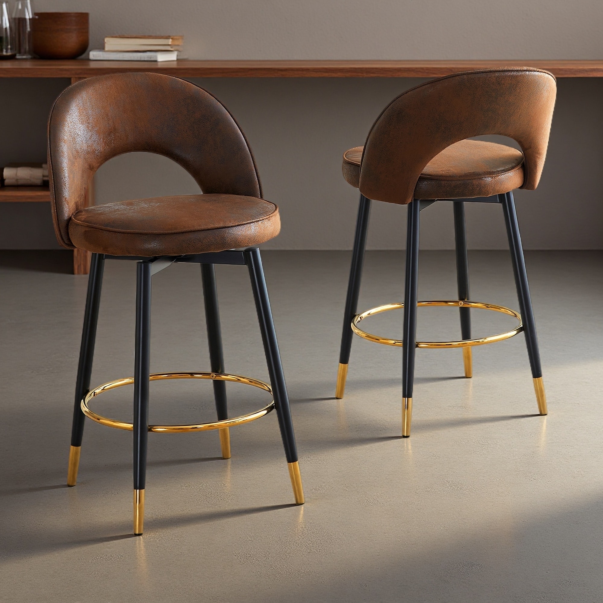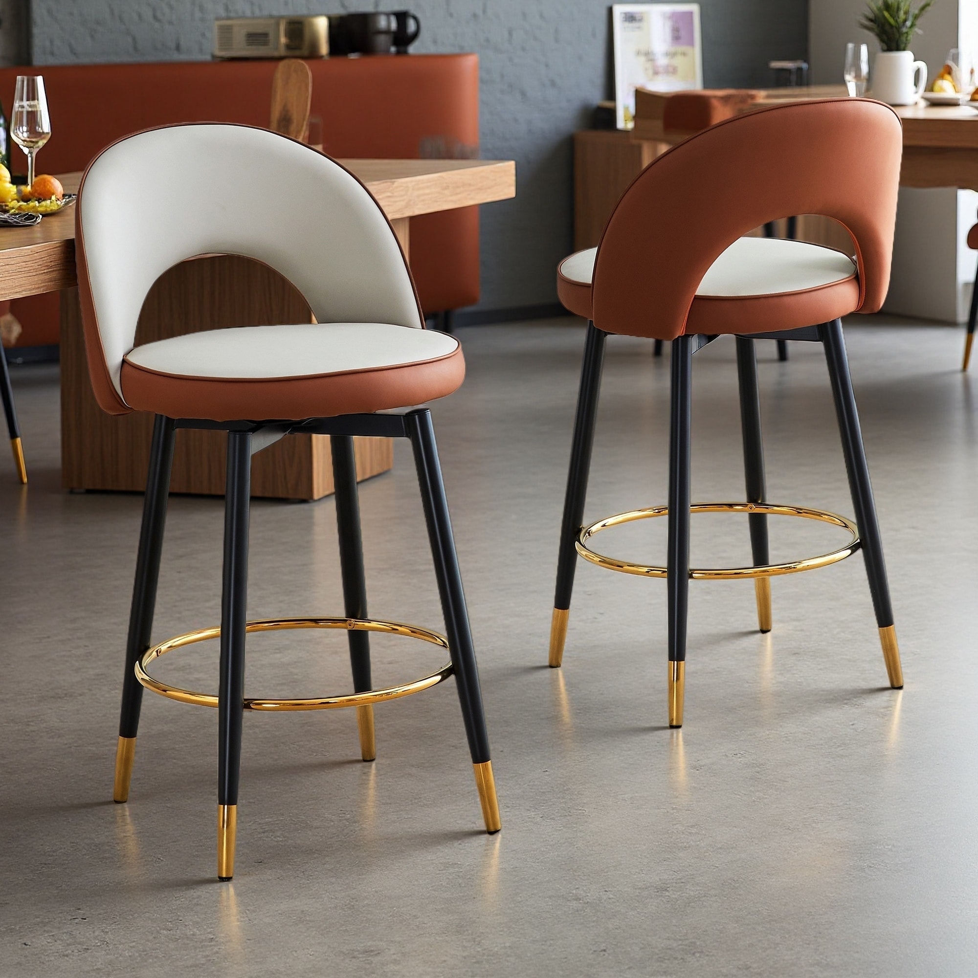 36"H Set of 2 Modern PU Leather 360° Rotatable Upholstered Bar Chairs with Ergonomic Design & Sleek Metal Legs for Dining Room