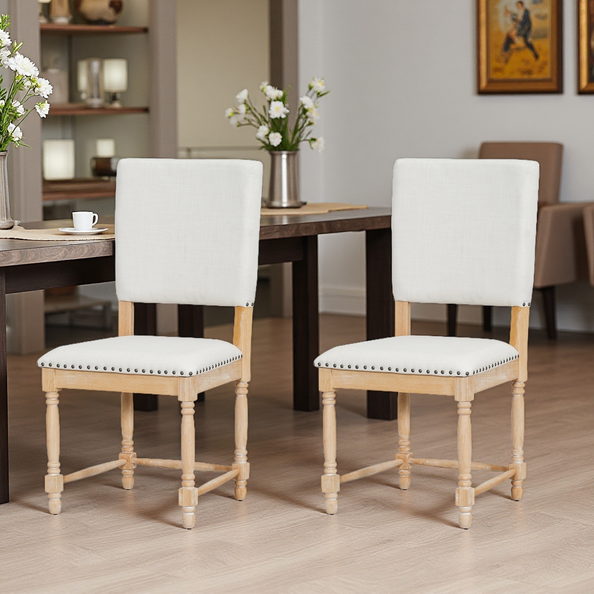 White/White Fabric Upholstered Wood Frame Dining Chair, Set of 2, Sturdy Dining Chair for Dining Rooms - 15.5