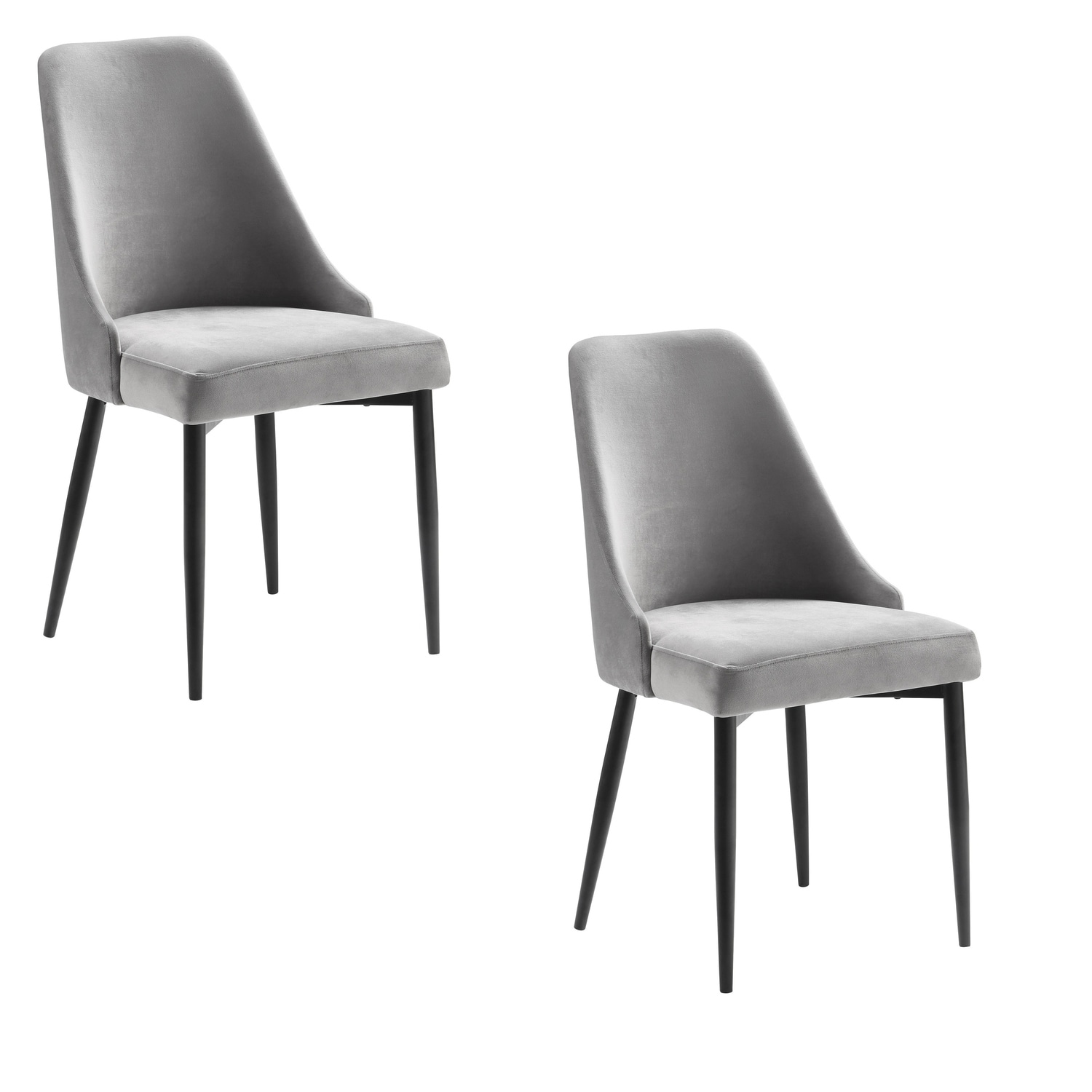 Black/Gray Velvet Upholstered Metal Frame Dining Chair, Set of 2, Sturdy Dining Chair for Dining Rooms - 17.5