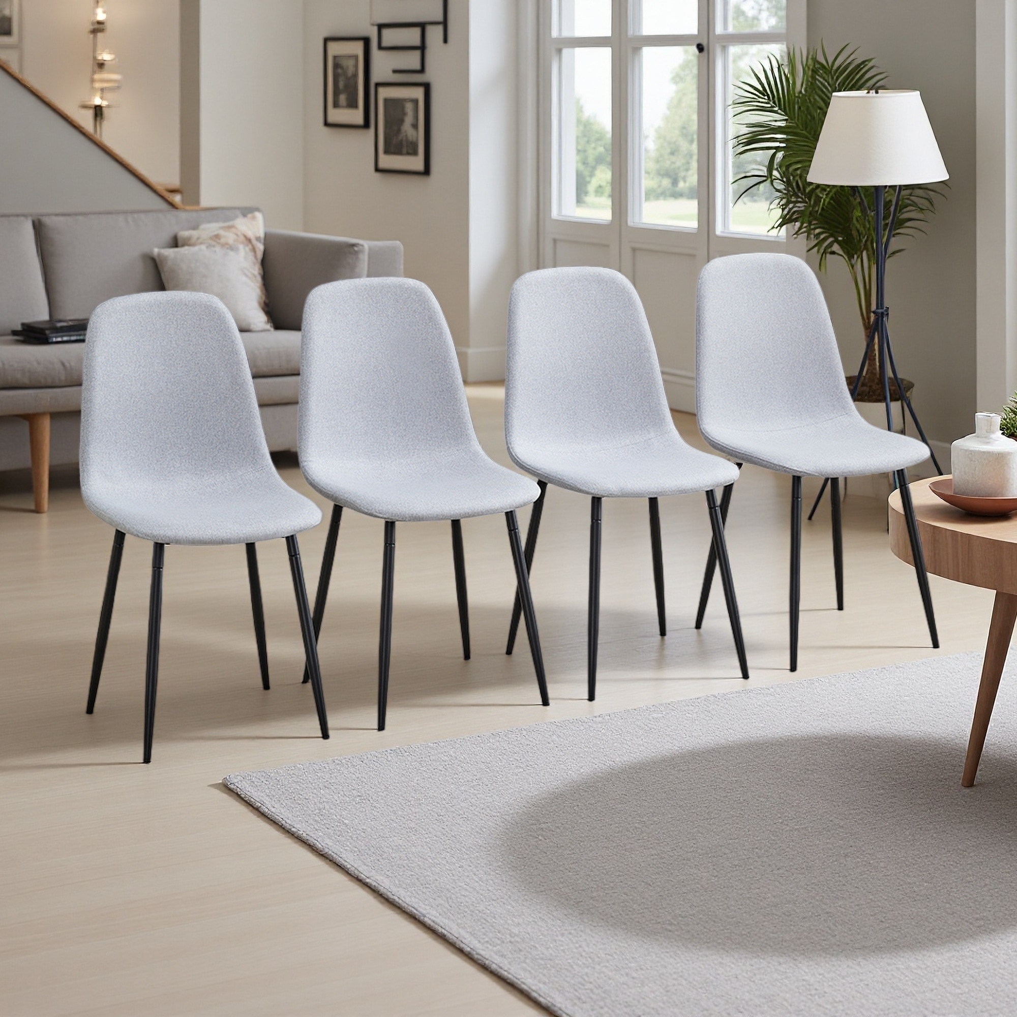 34.5"H Set of 4 Linen-Cotton Upholstered Dining Chairs with Ergonomic Rounded Backrest -Accent Chairs with Metal Legs