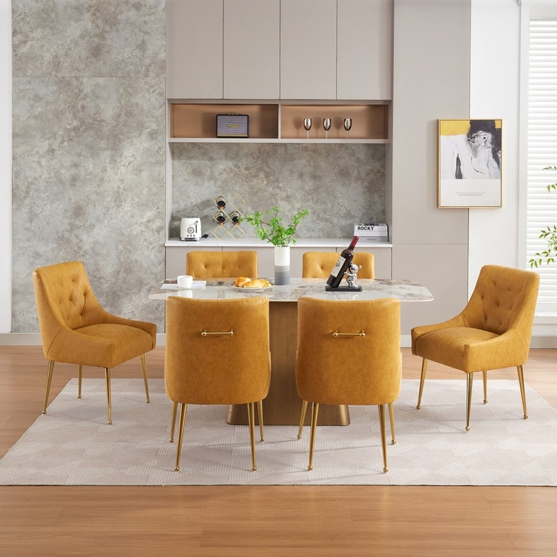 SEYNAR Modern Glam PU Leather Dining Chair Set of 6 with Golden Back Pulls