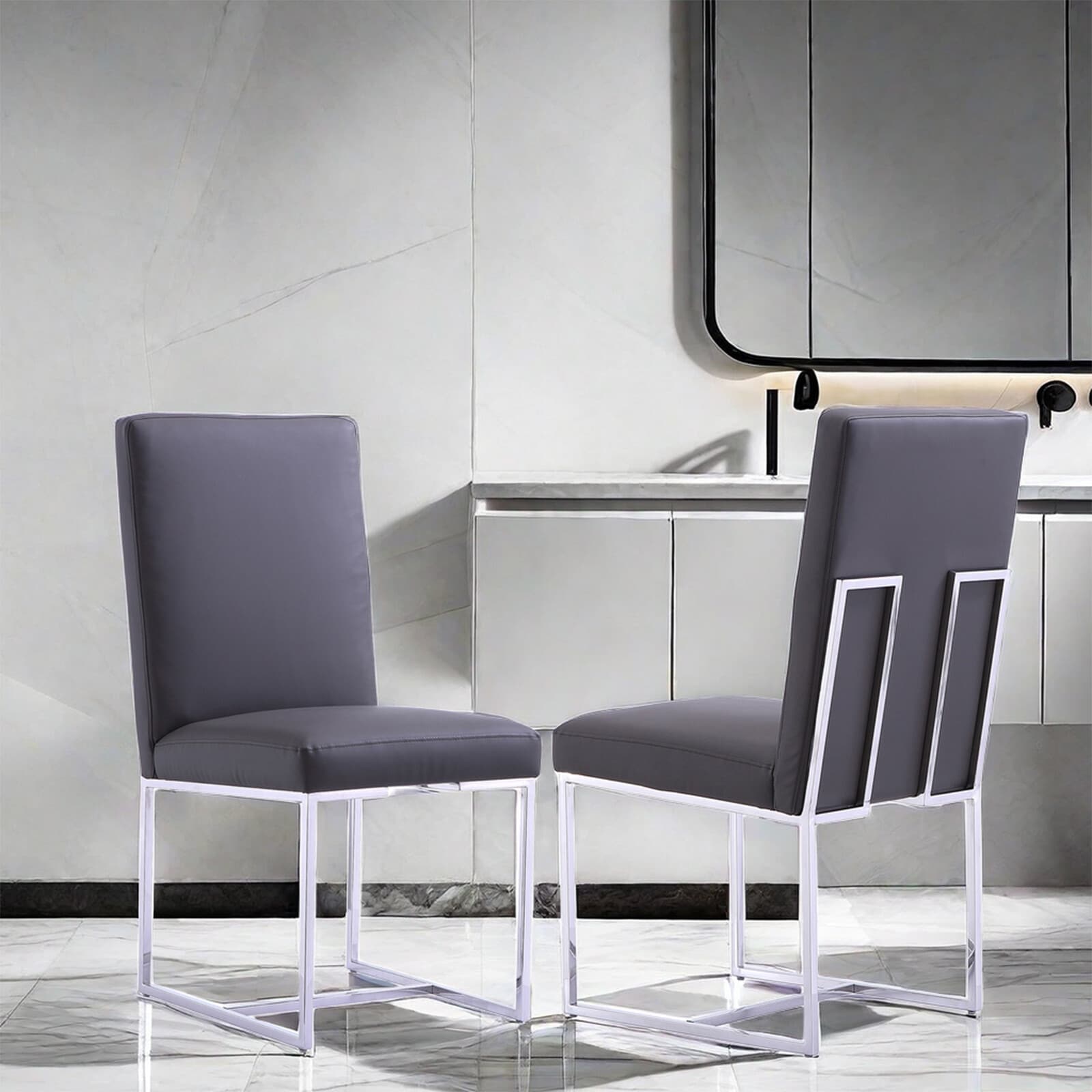 Modern Gray PU Leather Dining Chairs with Chrome Metal Legs