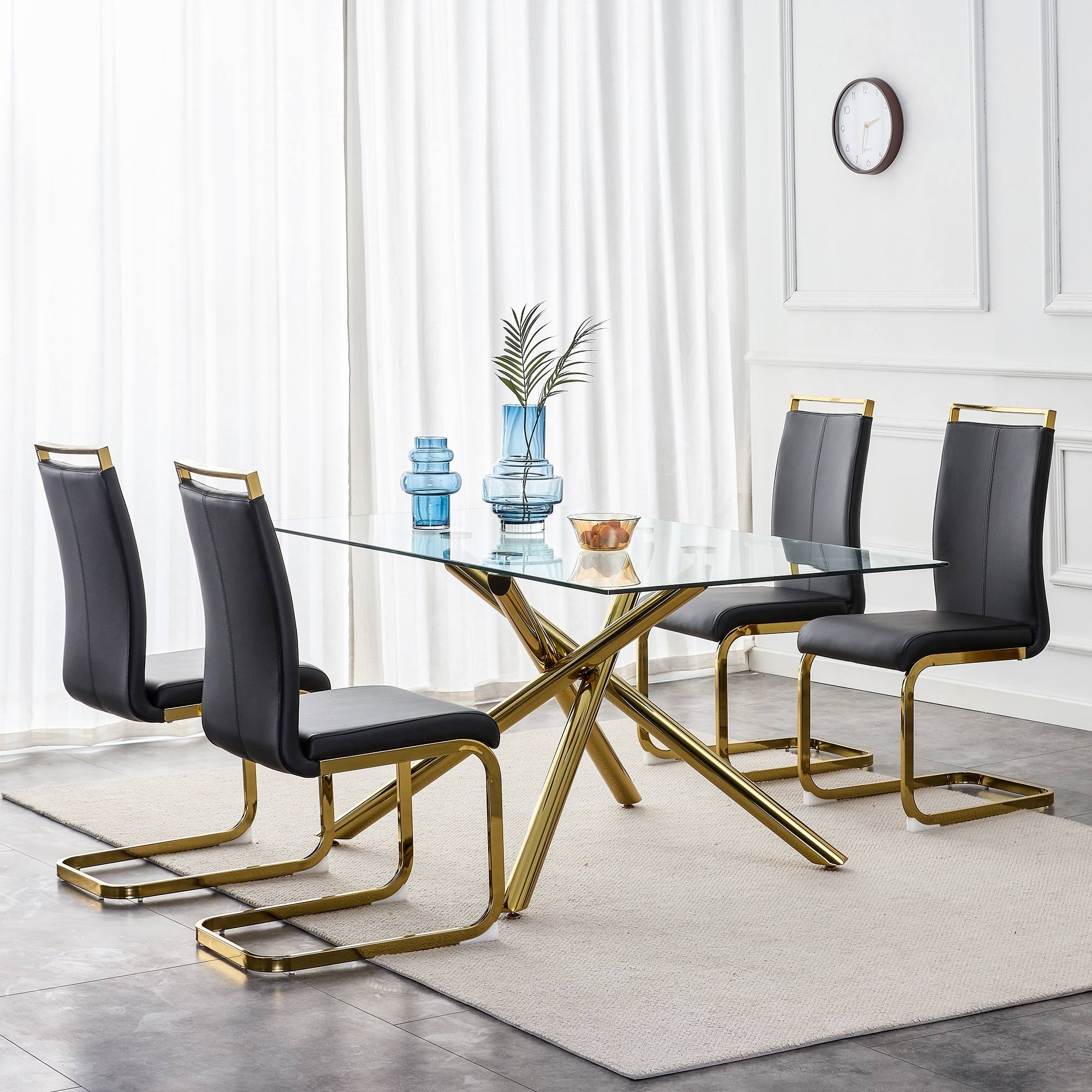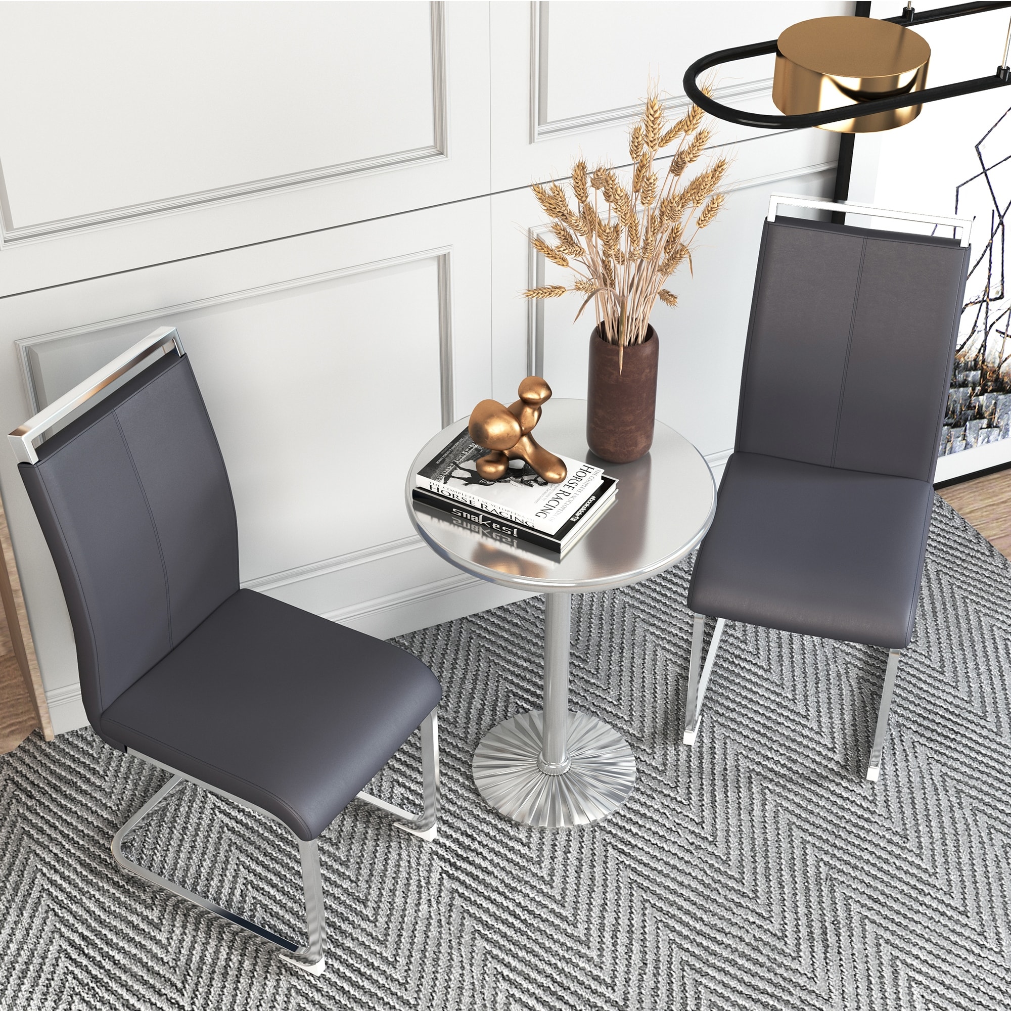 Dining Chairs Set of 4 with Diamond Back Office Chair and C-Metal Leg Lounge Chair, Faux Leather Upholstered Side Chair