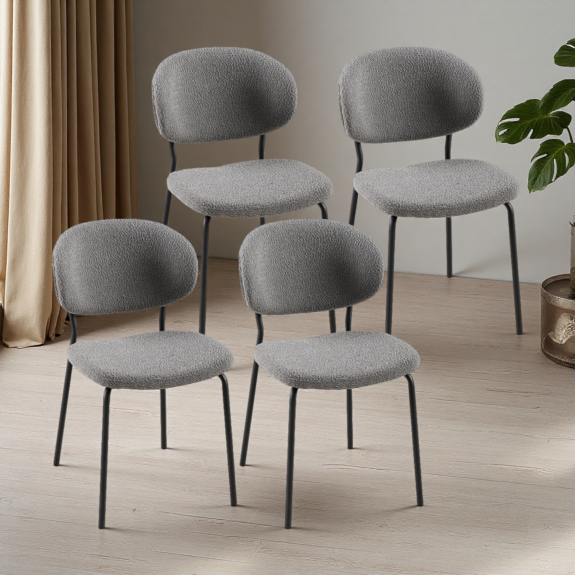 Boucle Polyester Upholstered Side Chair - Water/ Stain Resistant (Set of 4)