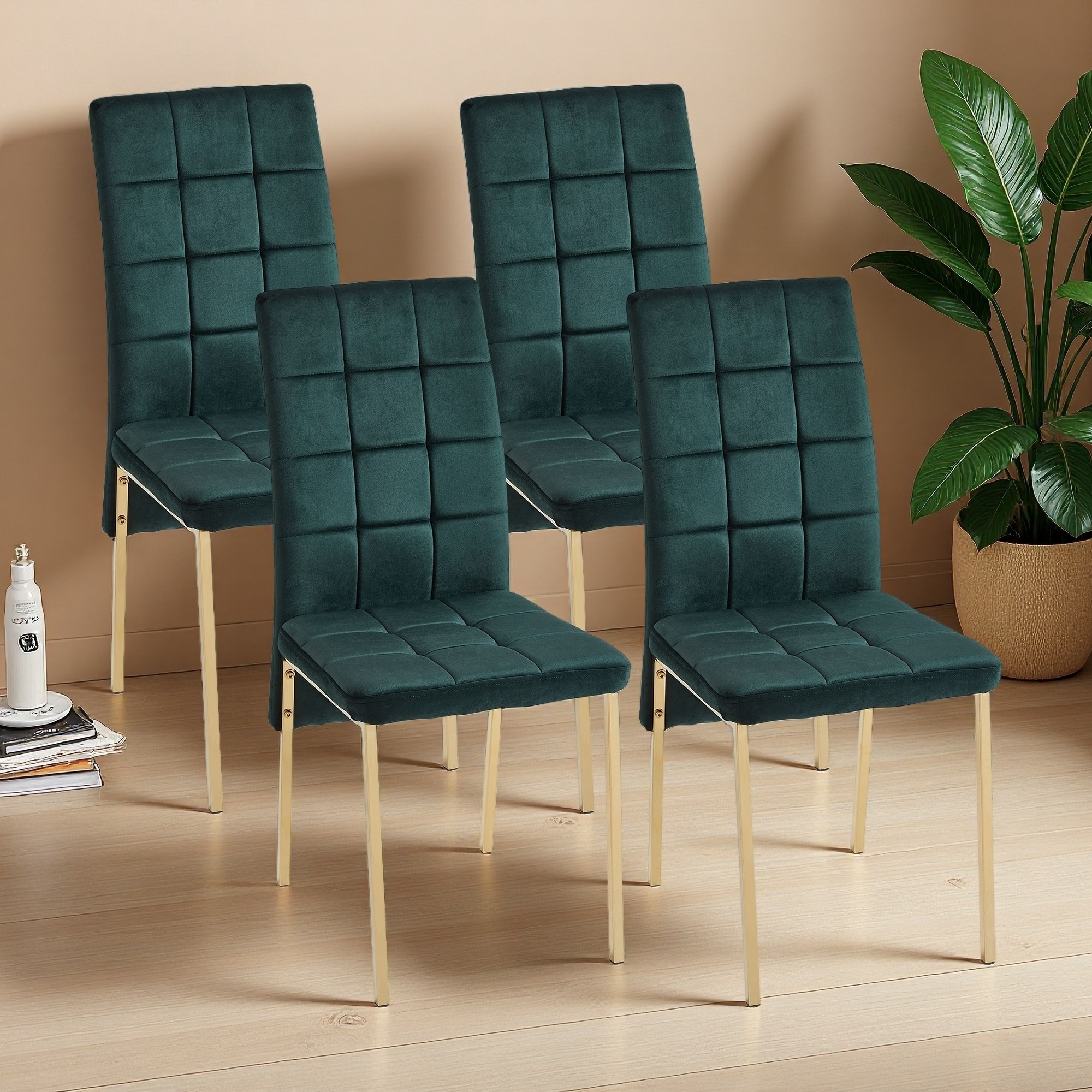 36.2"H Set of 4 Velvet High Back Nordic Dining Chairs with Upholstered Kitchen Side Chairs with Dovetail Back and Thick Cushion