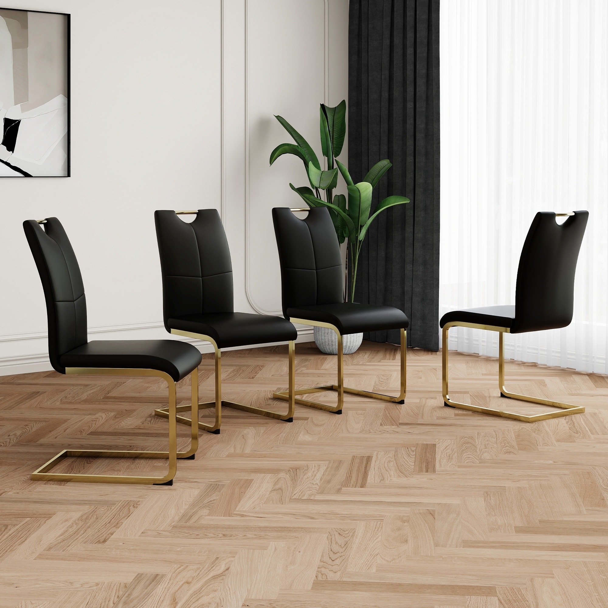 Modern Set of 2 Dining Chairs with Leather Backrest High-Density Foam Seat Arched Metal Legs, for Dining Room Living Room