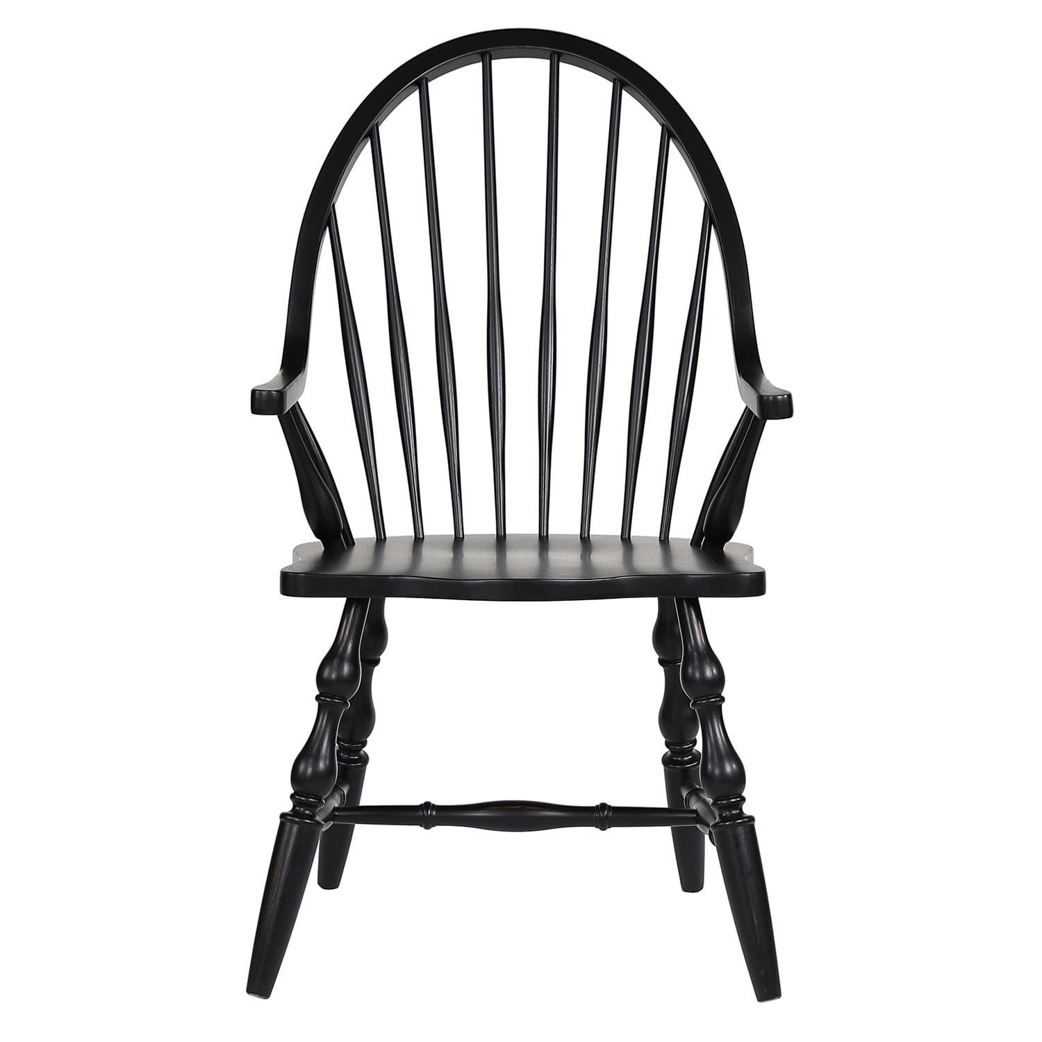 Retro Spindleback Dining Chair - Cozy Armchair, Fully Assembled - Antique Black Finish - HomeStock