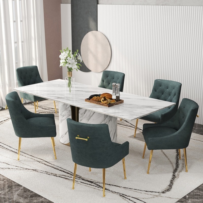SEYNAR Modern Glam PU Leather Dining Chair Set of 6 with Golden Back Pulls