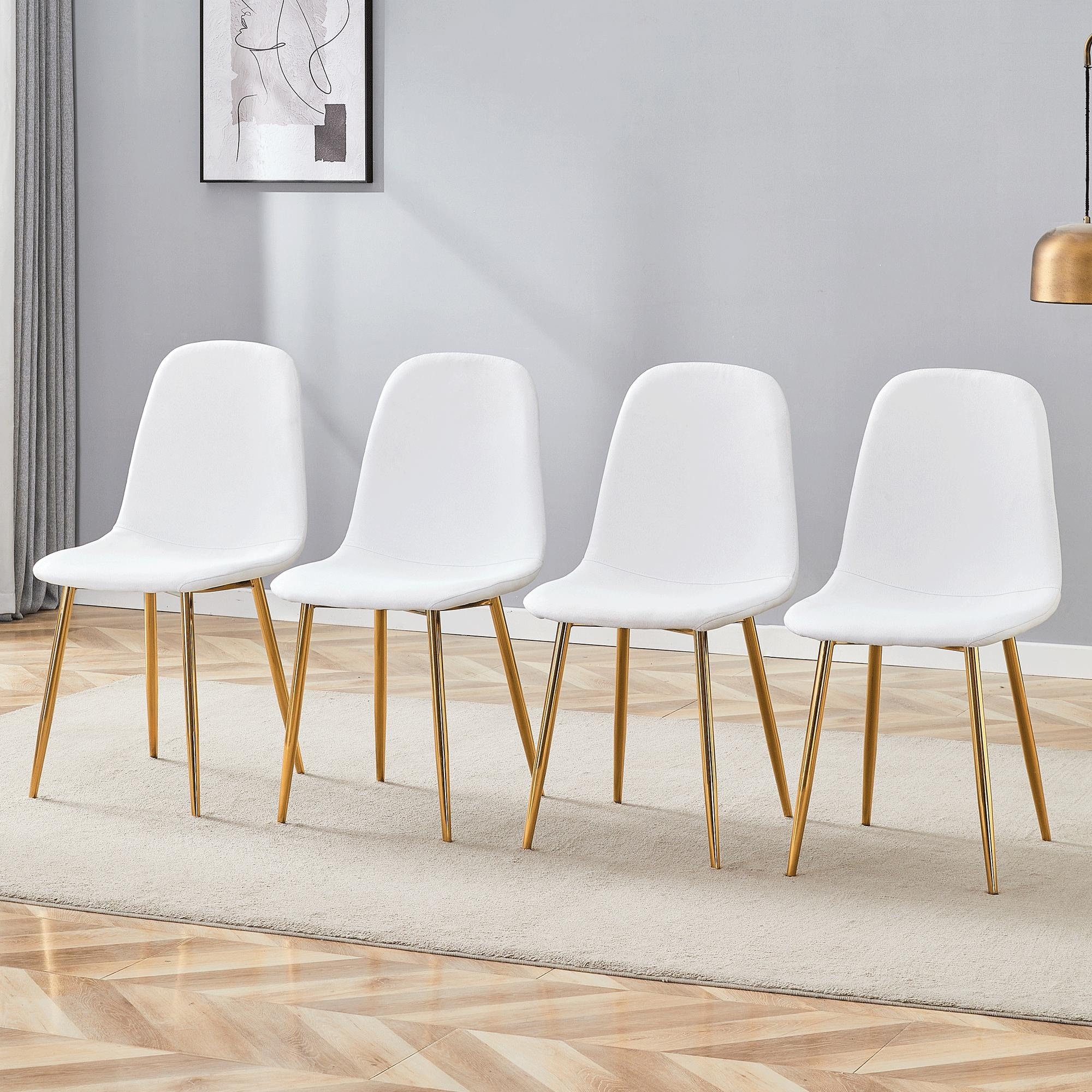 Set of 4 White Linen Material High Resilience Dining Chair with Metal Golden Leg.Integral metal leg architecture