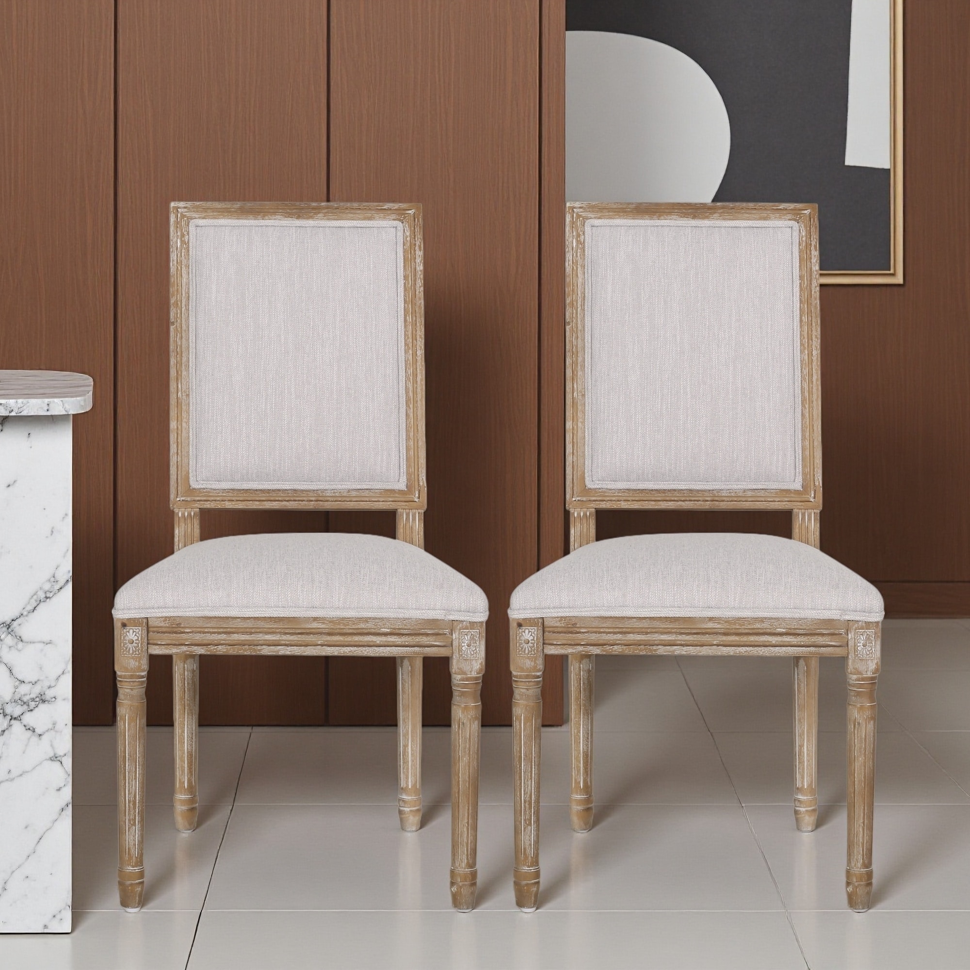 39.5"H Set of 2 French Country Rubberwood Dining Chairs with Cane Back & Upholstered Seat
