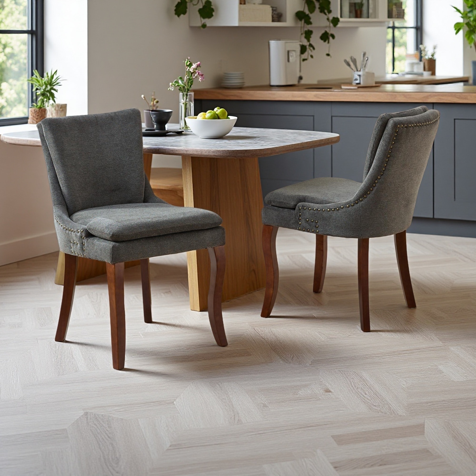 32.9"H Set of 2 Modern Chenille Upholstered Dining Chairs with Double-Layer Cushioning, Nailhead Trim & Curved Solid Wood Legs