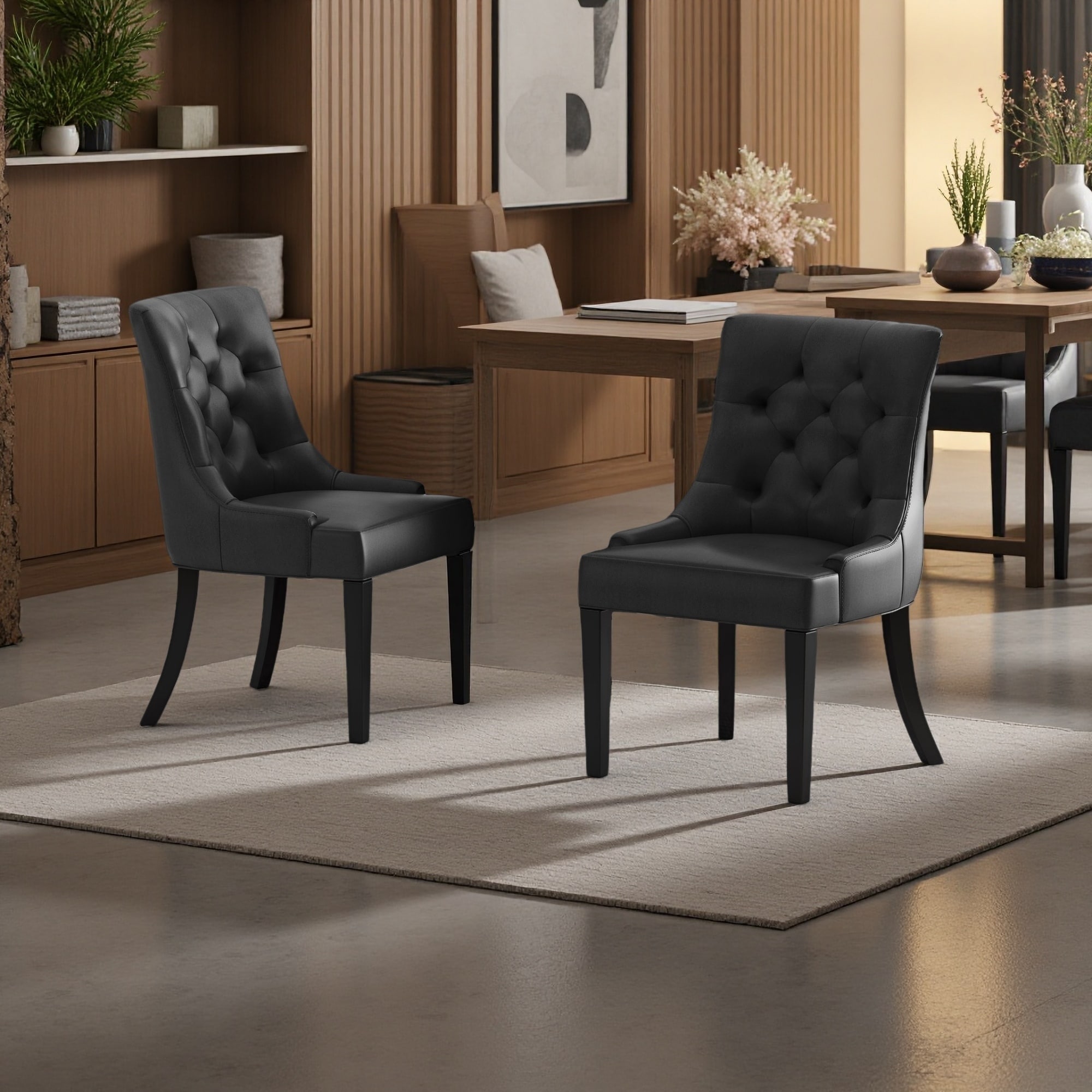 36"H Set of 2 PU Upholstered Dining Chairs with Tufted Back & Sloped Arms