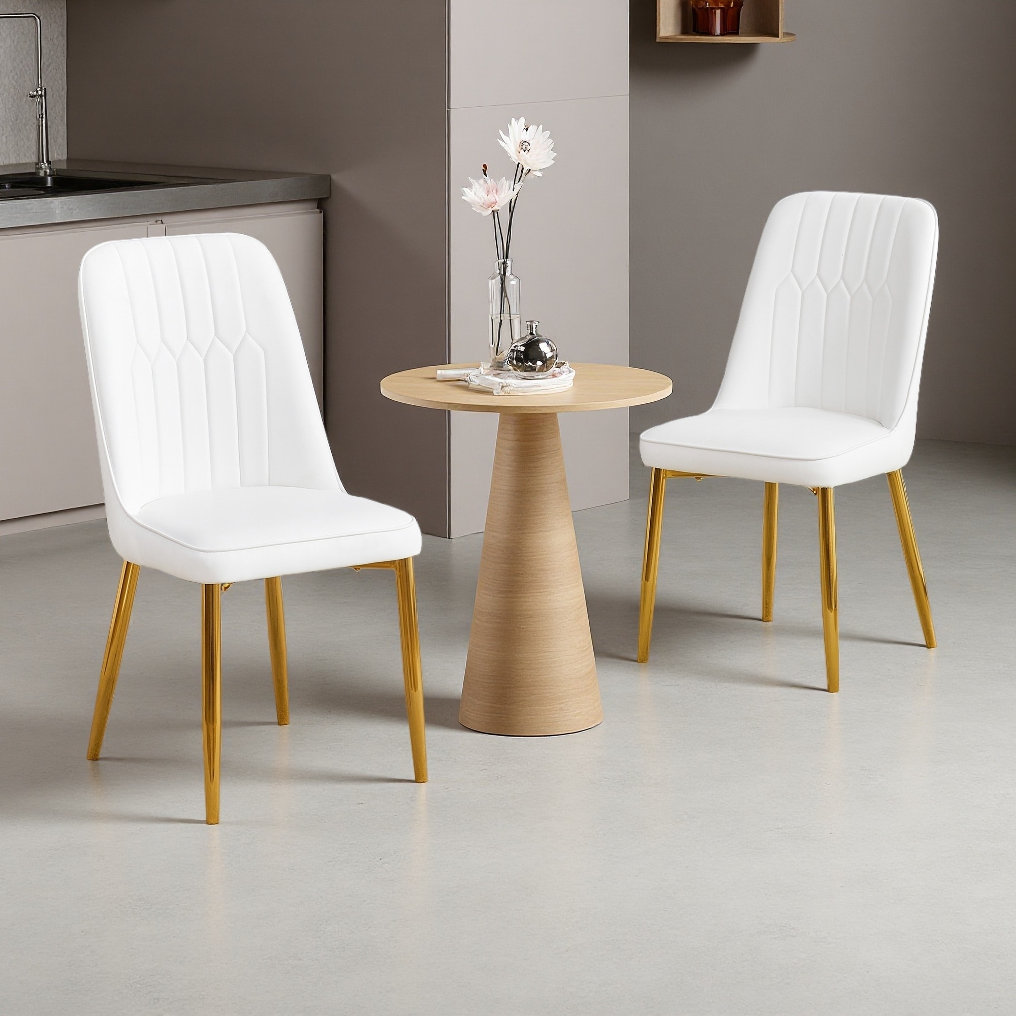 35"H Set of 2 PU Leather Dining Chairs with Curved Back & Metal Legs