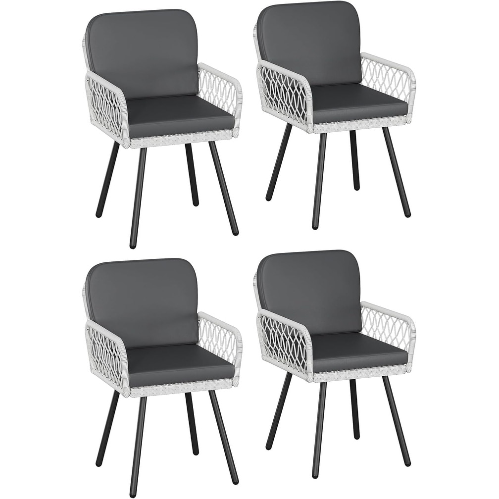Outdoor Rattan Dining Chairs Set of 4 with Cushions, Stackable Patio Chairs for Garden or Balcony