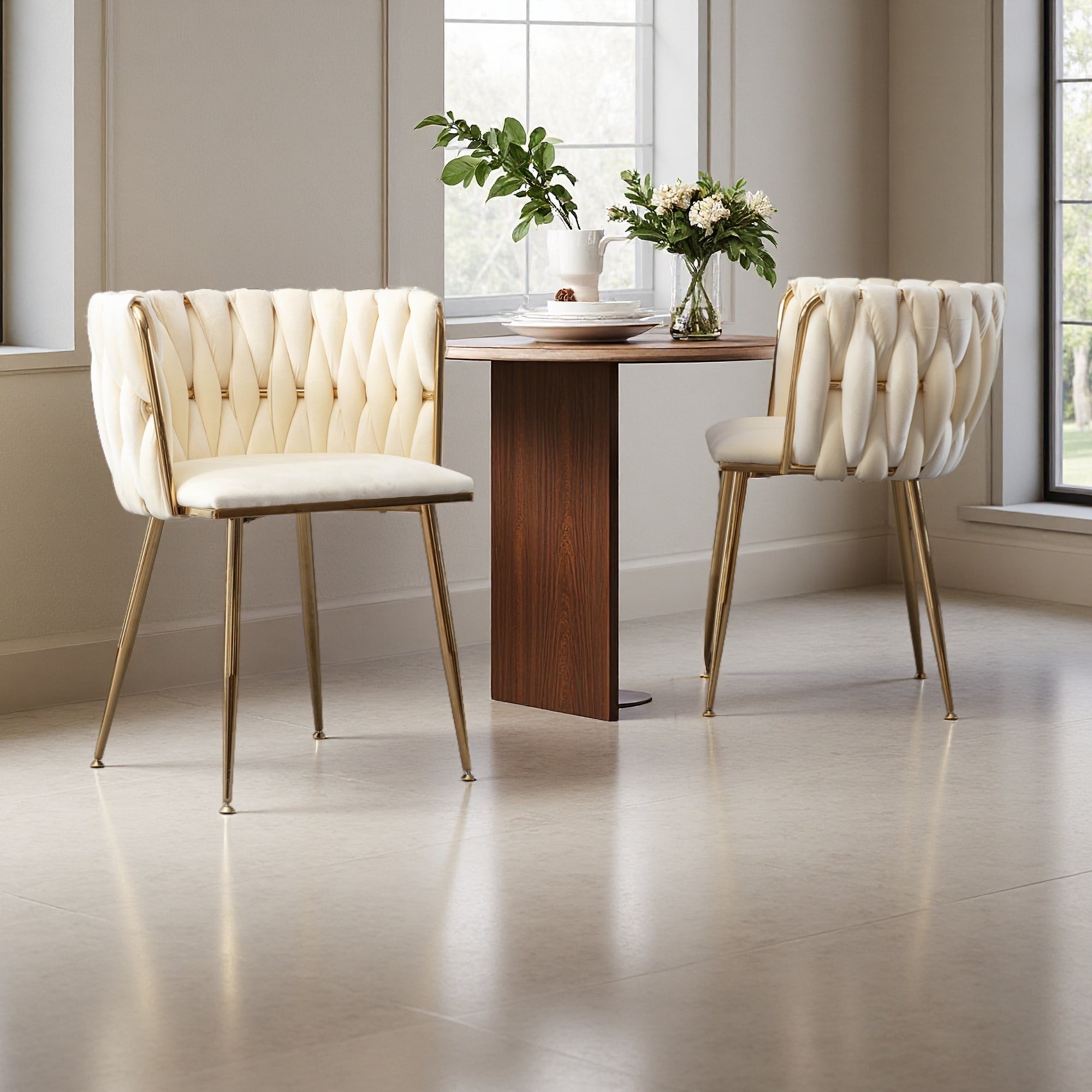 29.5"H Set of 2 Modern Velvet Dining Chairs with Metal Frame