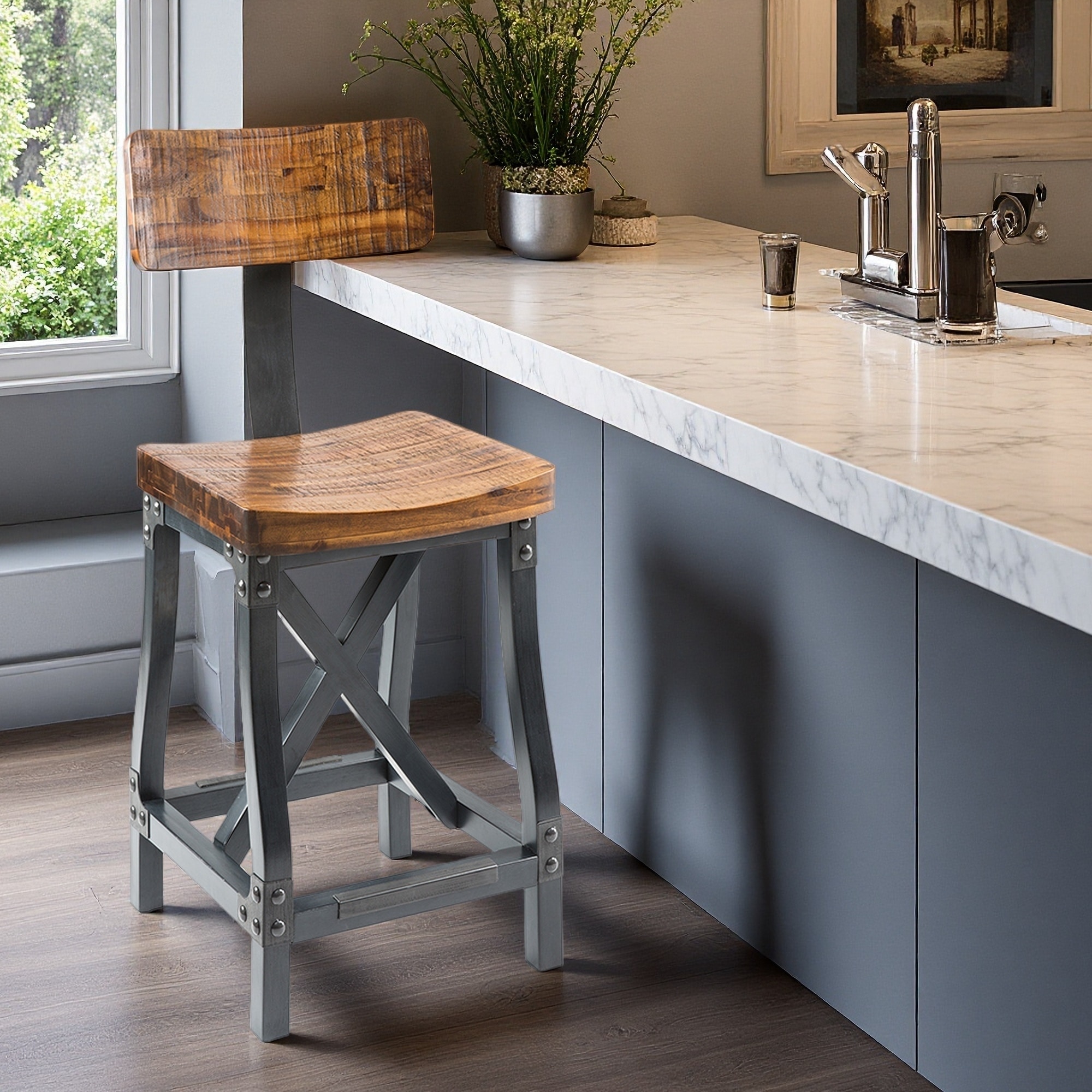 42.5"H Solid Acacia Bar Stool with Amber Finish & Metal Base