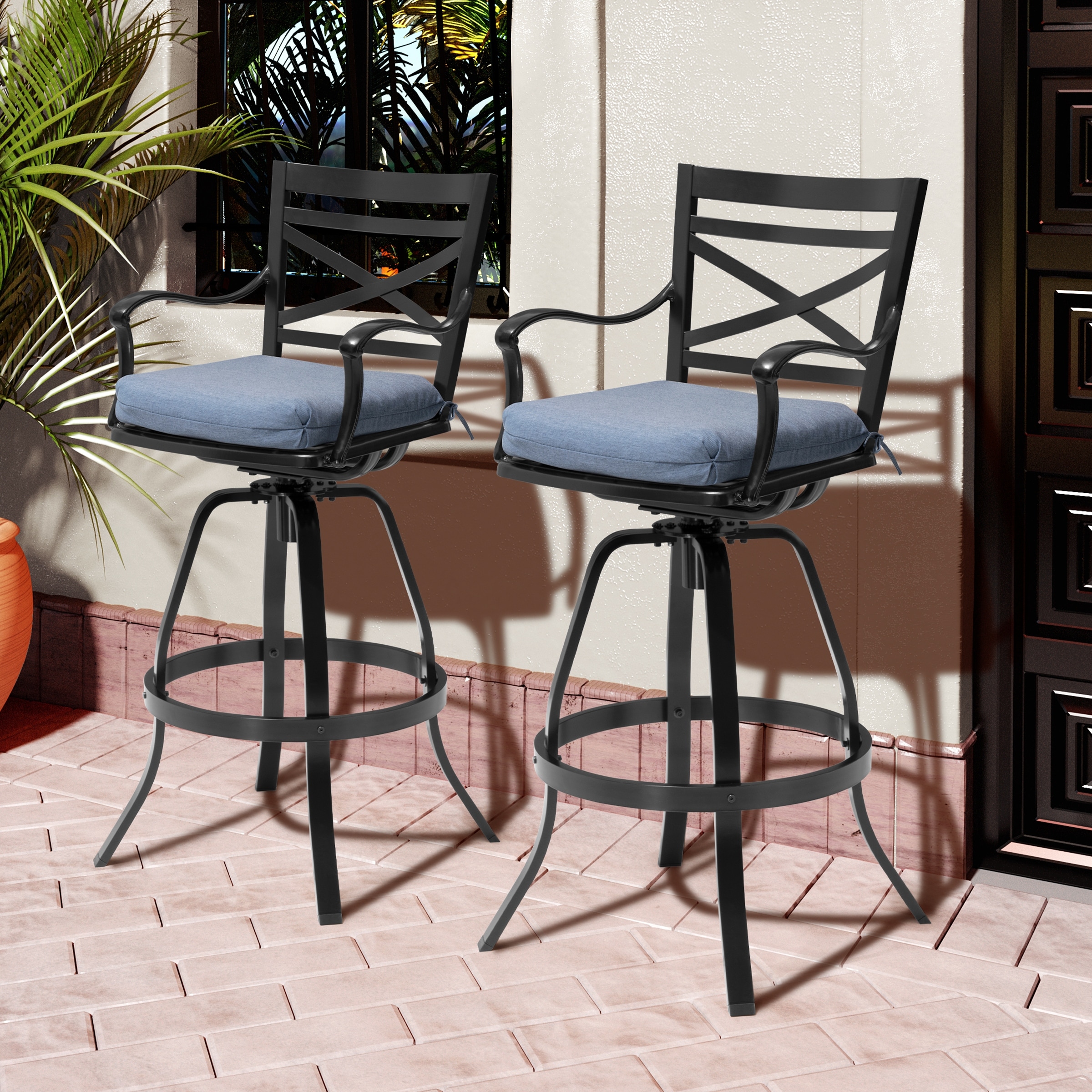 Outdoor Patio Bar Stools Aluminum Swivel Bar Chair with Sunbrella Cushion - 21.7 in W x 16.5 in D x 46 in H