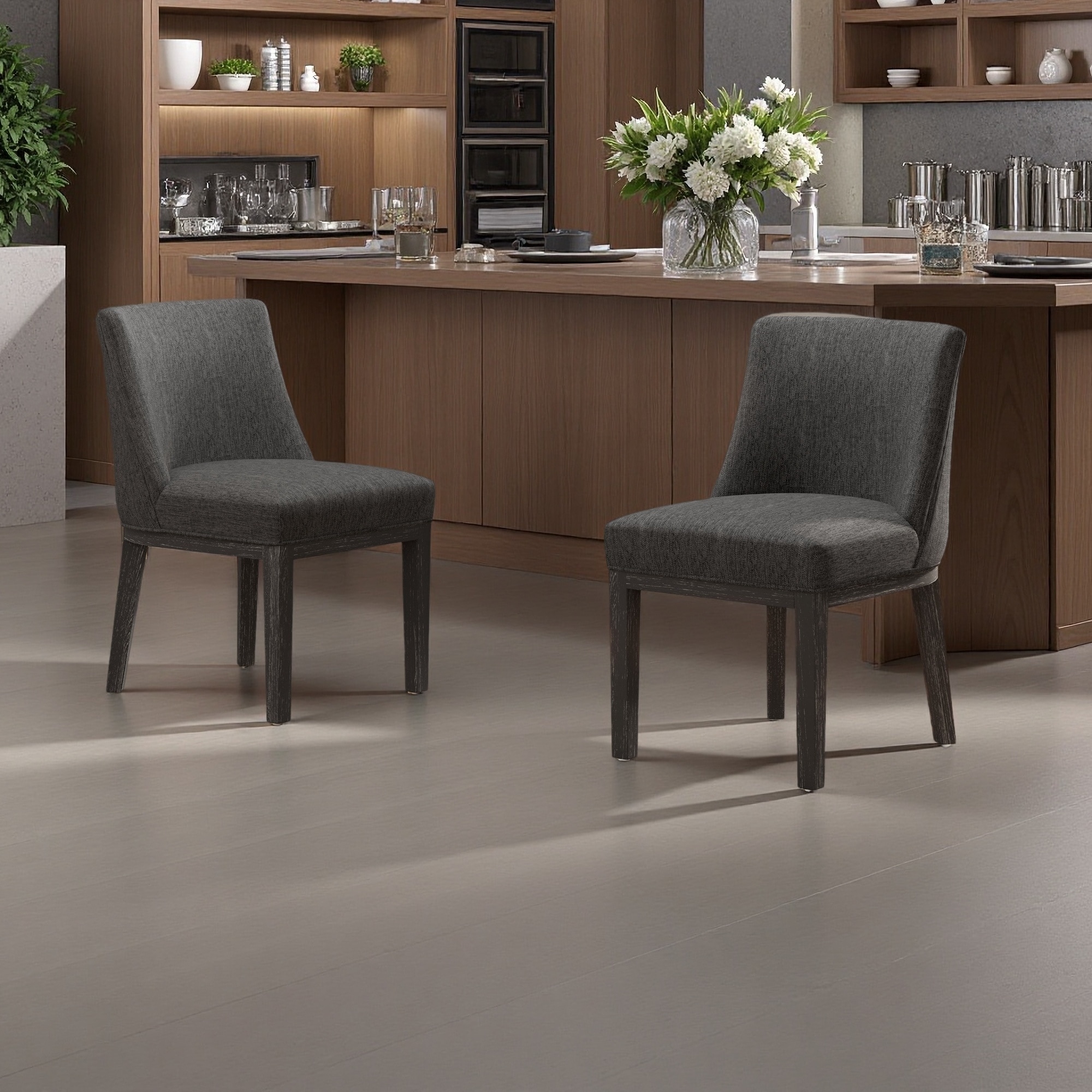 32"H Set of 2 Upholstered Plywood & Rubberwood Dining Chair with Curved Back & Fade-Resistant Fabric