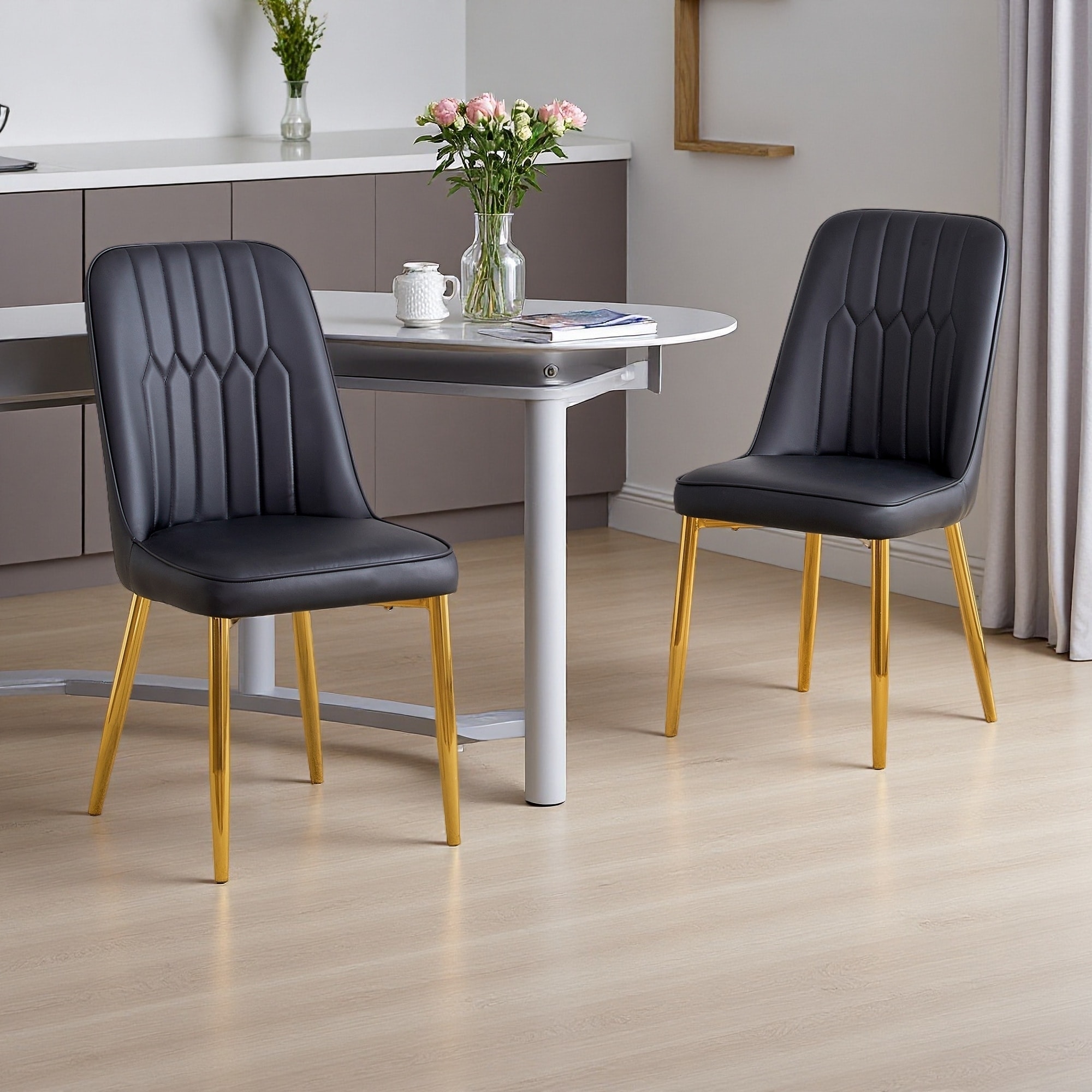 35"H Set of 2 PU Leather Dining Chairs with Curved Back & Metal Legs