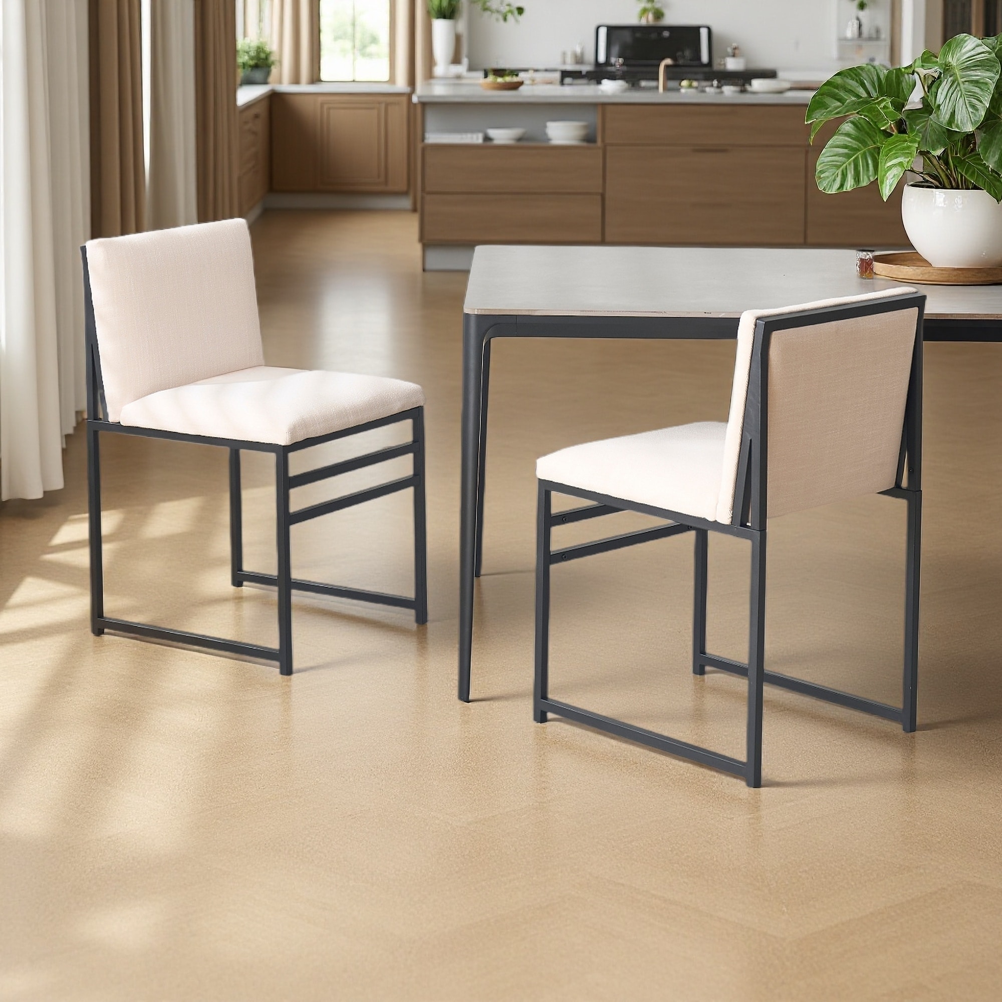 30.7"H Set of 2 Linen Dining Chairs with Cushioned Seat & Iron Frame