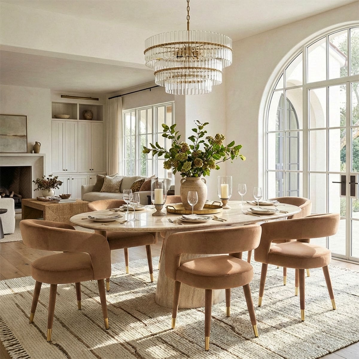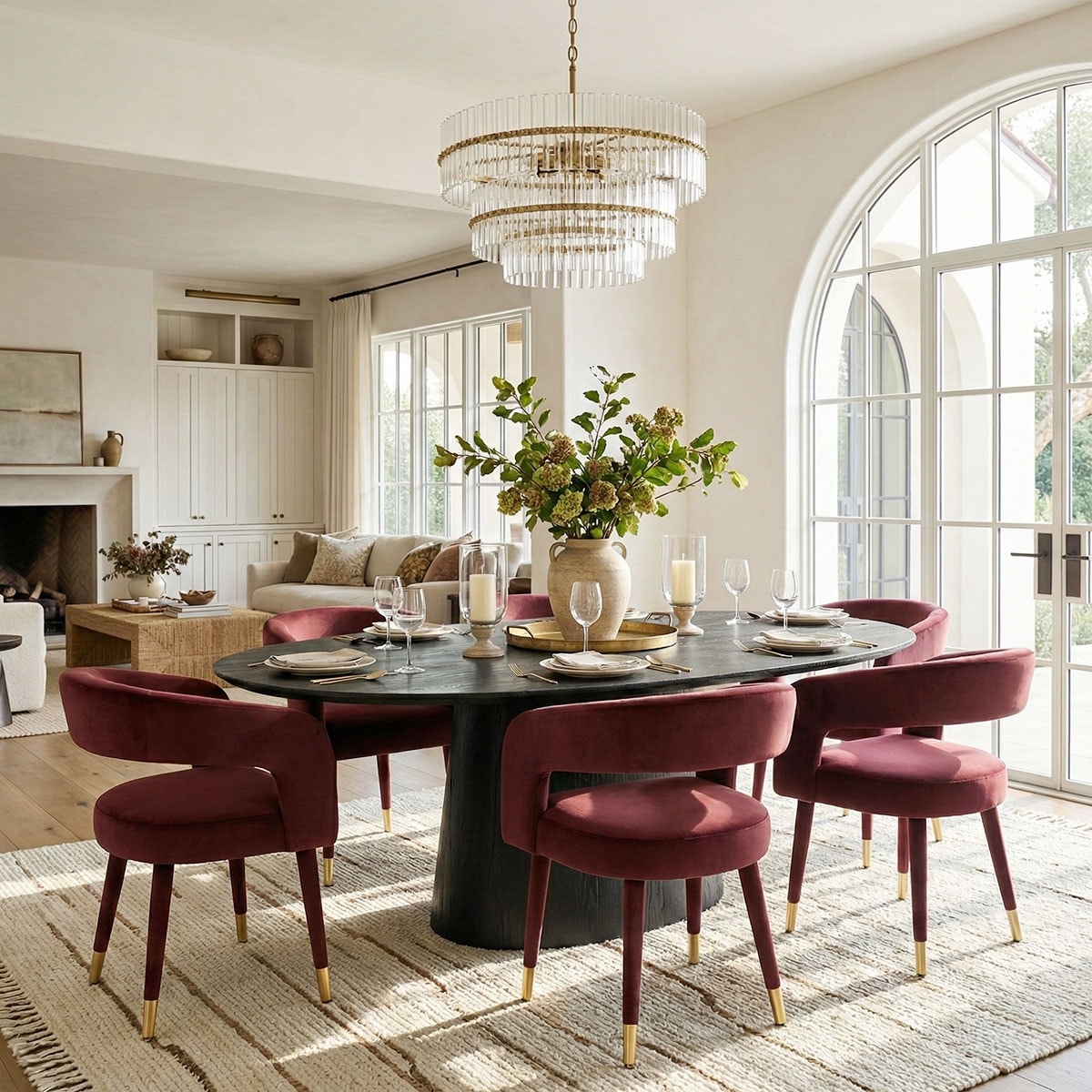 Velvet Upholstered Barrel-Back Dining Chair With Gold Capped Legs (Set of 6)