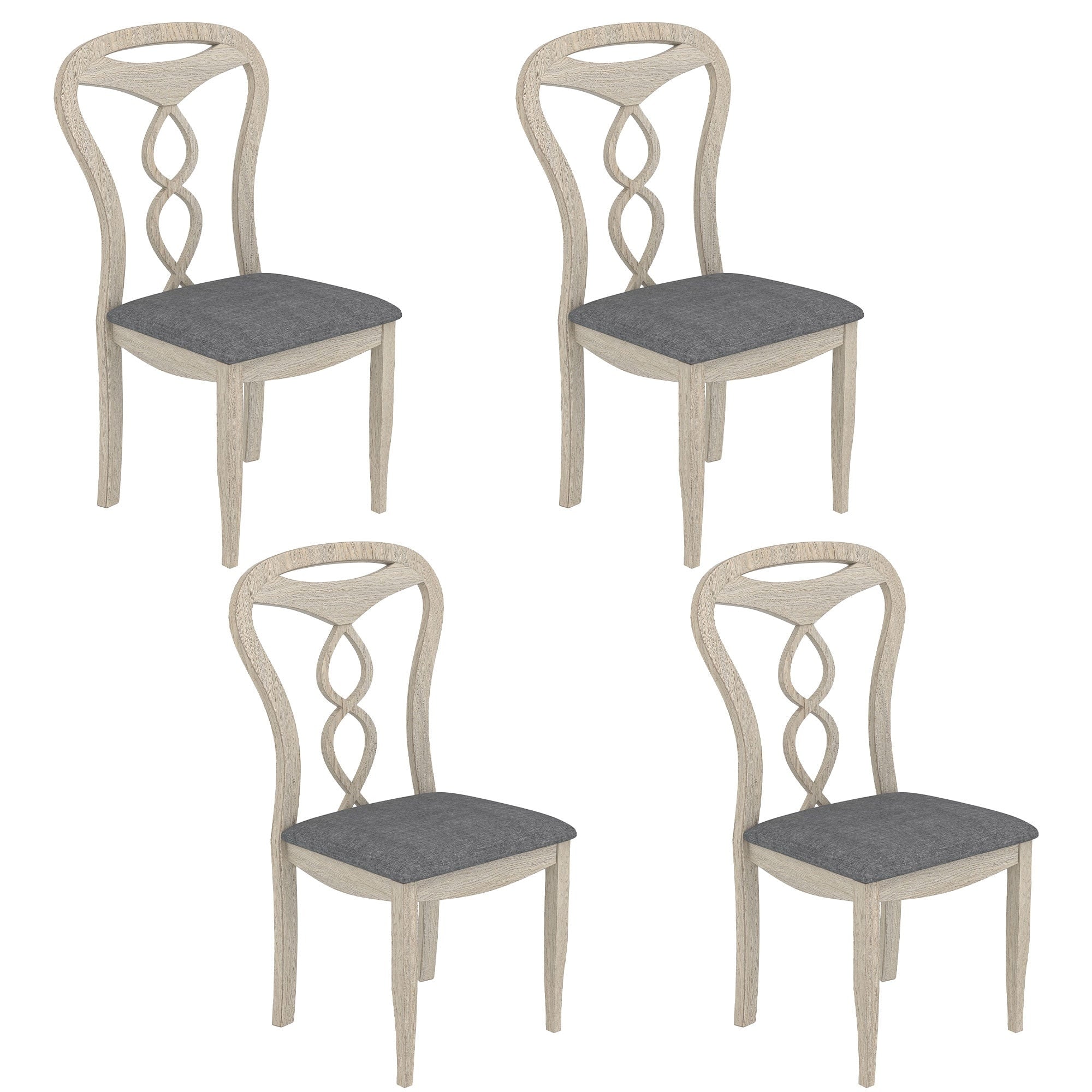 VECELO 2/4/6-Piece Set Modern Grey Rubberwood Dining Chairs with Upholstered Cushion and Carved Fish Back for Dining Room