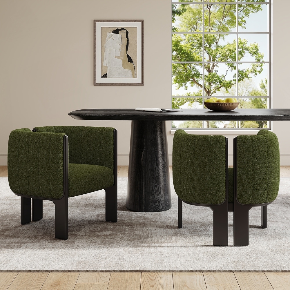 Modern Comfortable Dining Side Chairs Set of 2pc Plush Chenille Upholstered Seat and Back Wooden Furniture