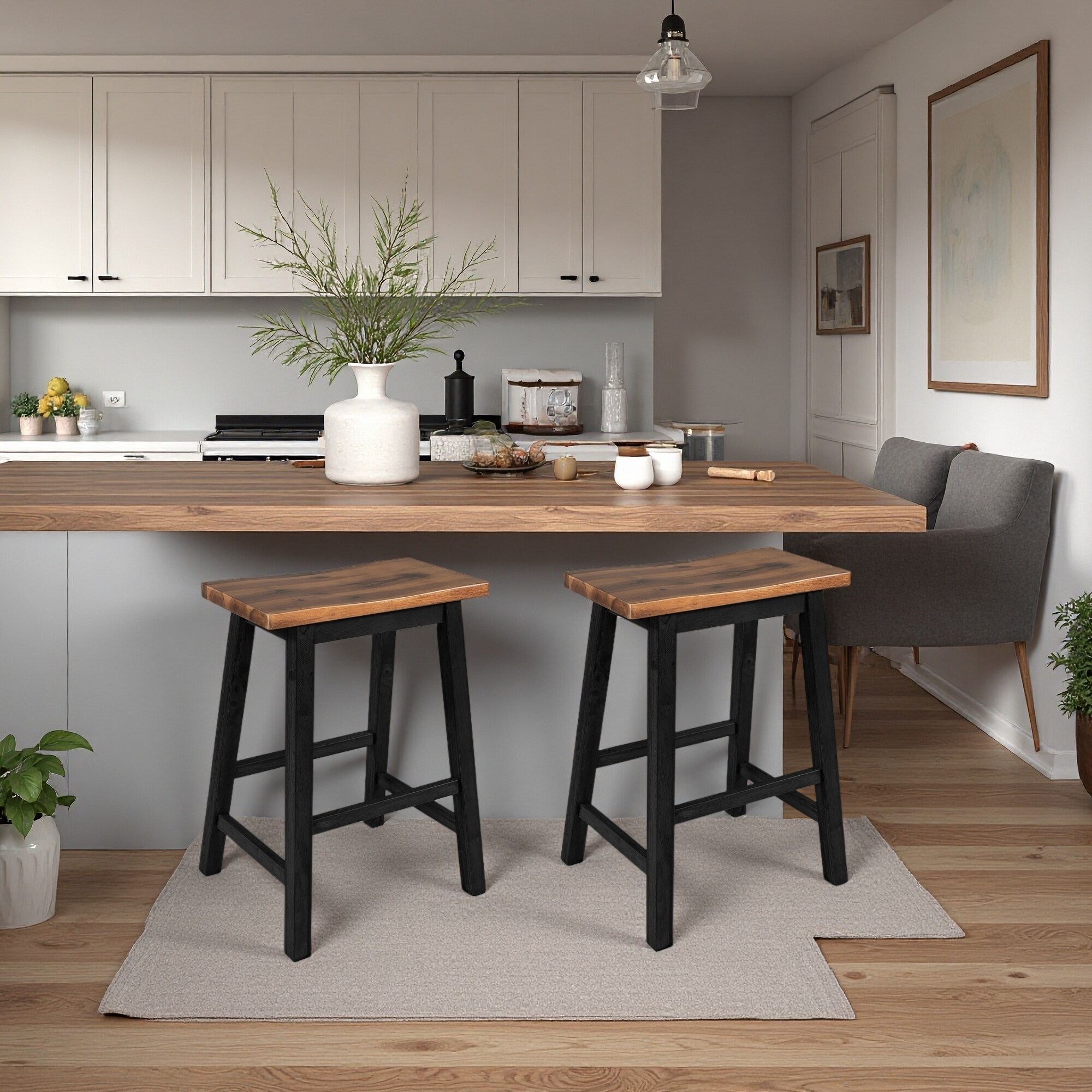 23.6"H Set of 2 Counter Height Stools Solid Rubberwood & Acacia Wood Kitchen Dining Stools with Curved Top and Footrest