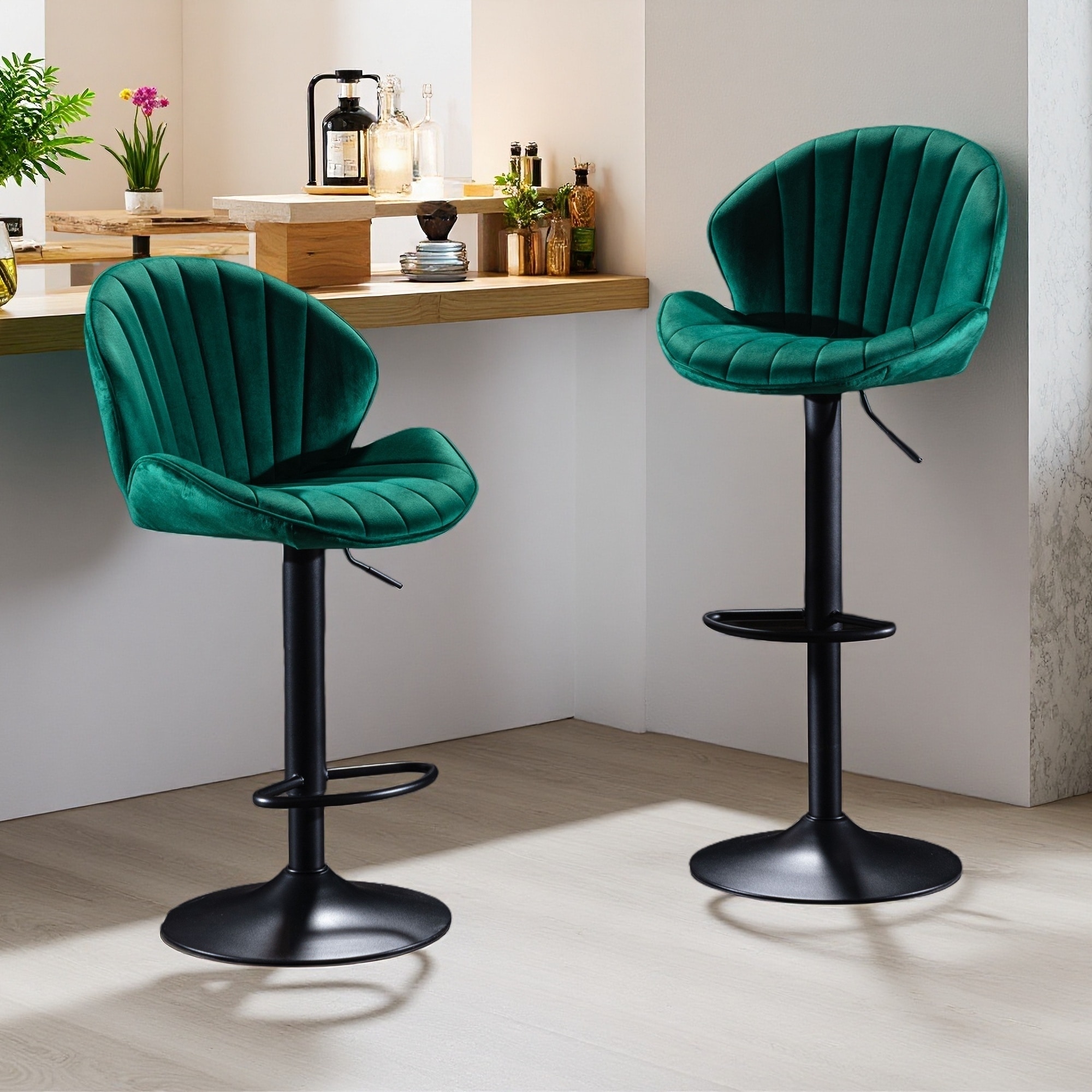 36"H Set of 2 Adjustable Bar Stools with Backrest, Footrest & Swivel Chrome Base-Counter Height Bar Chairs