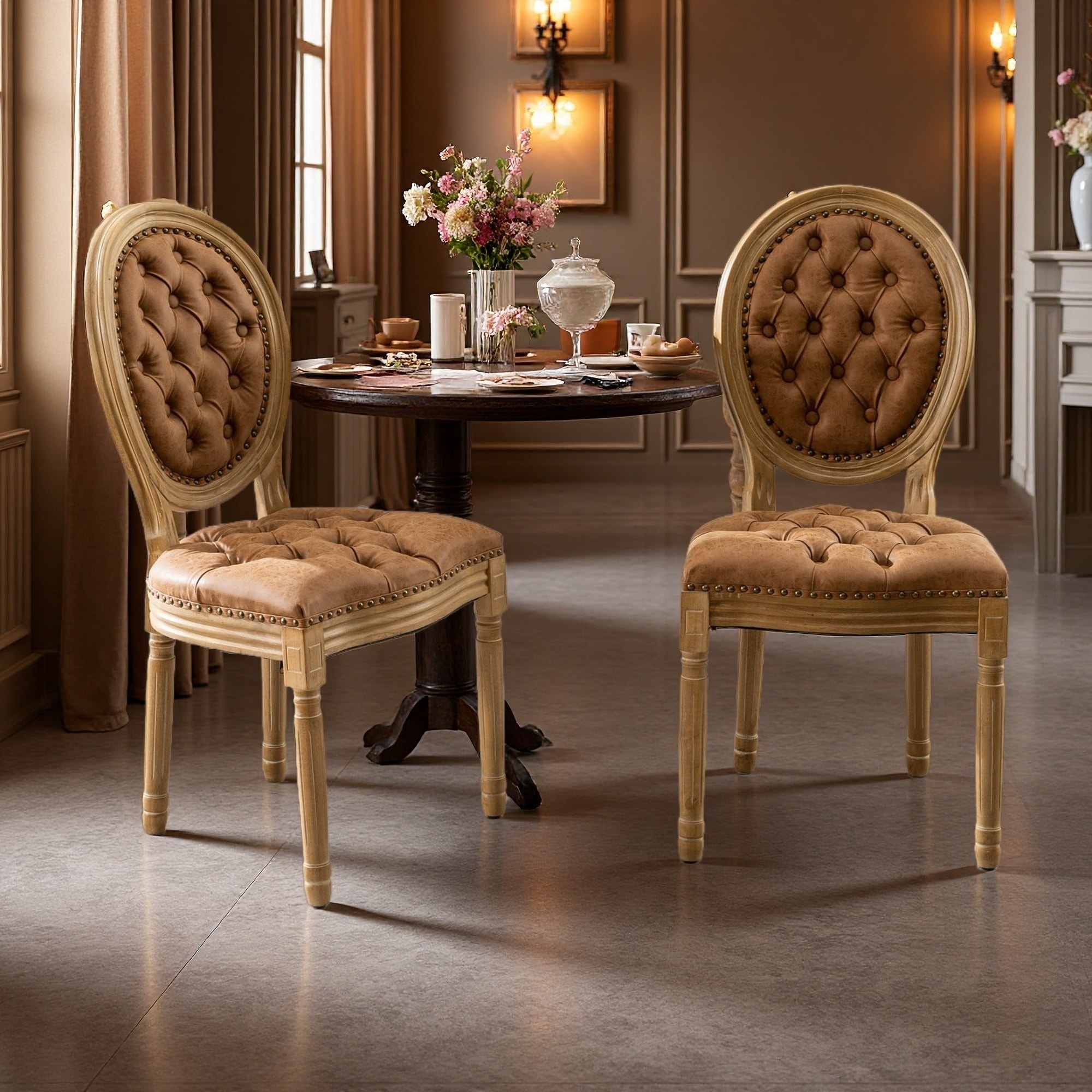 37.4"H Set of 2 Solid Wood Frame Antique Painted PU Leather Dining Chairs-Hand-Pulled Button Tufting, Adjustable Peg Legs