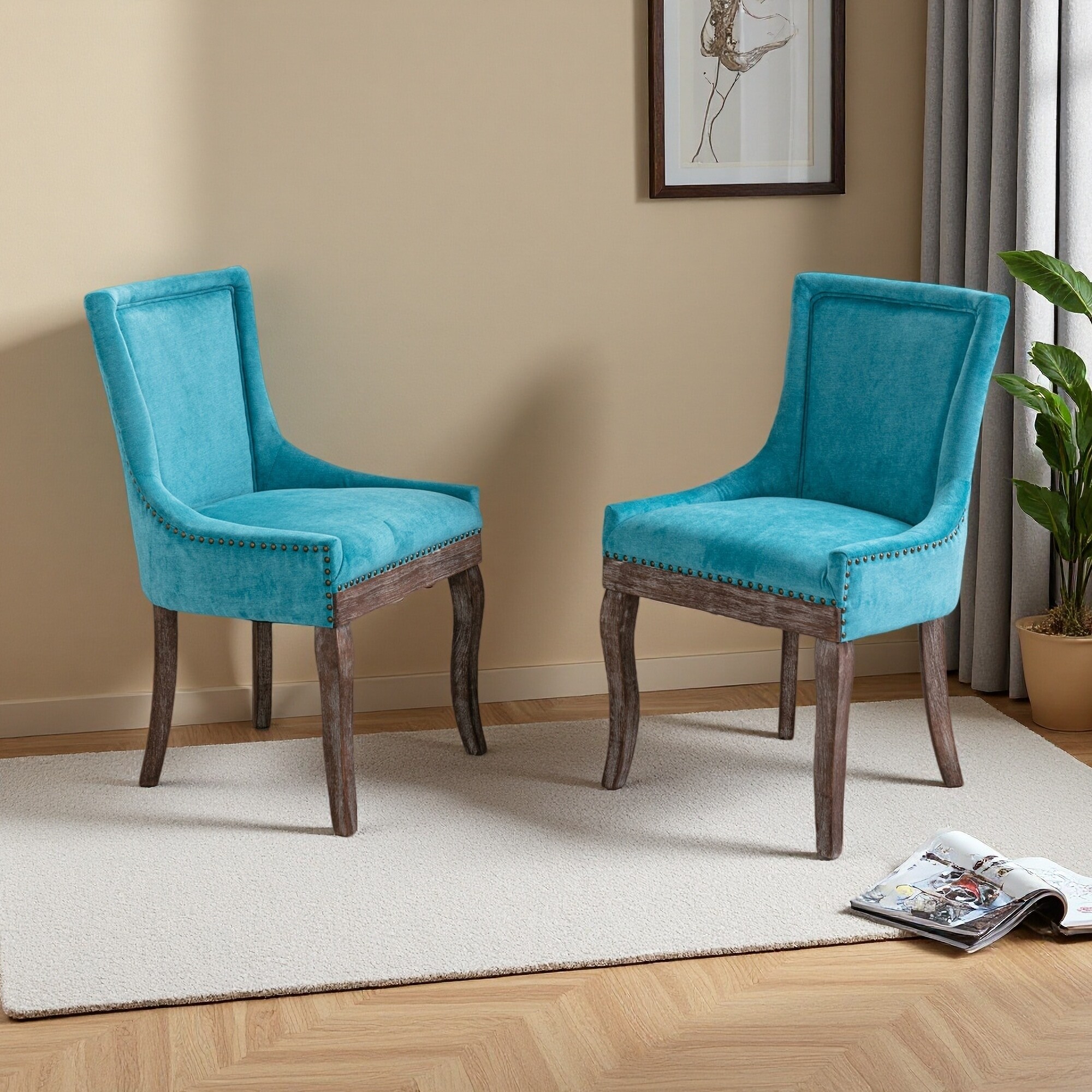 Dining Chairs Kitchen Furniture, Bronze Nailhead Trim Chairs,Thickened Fabric Side Dining Chairs with Neutrally Toned Wood Legs