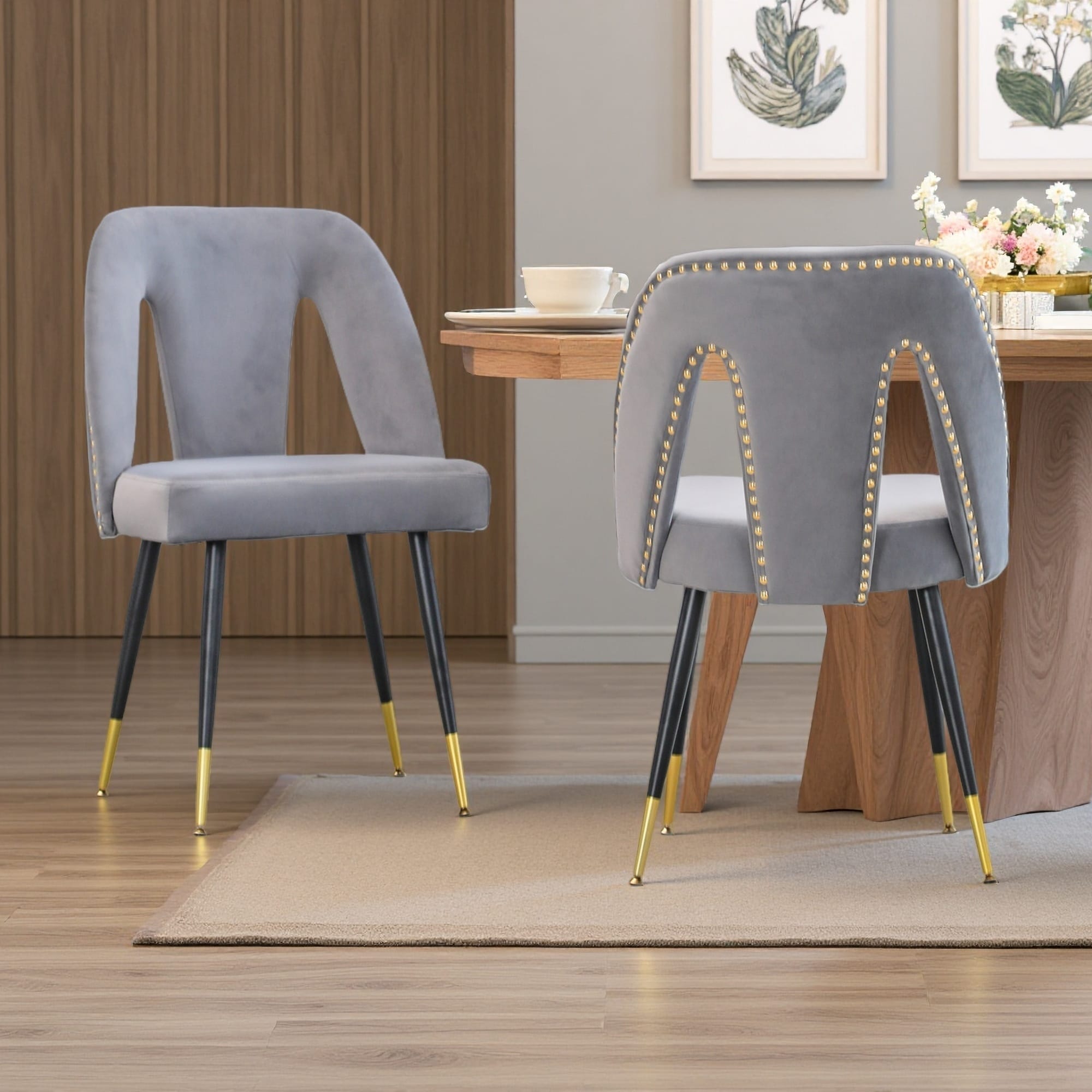 32.3"H Set of 2 Velvet Upholstered Dining Chairs with Nailhead Trim & Gold-Tipped Legs