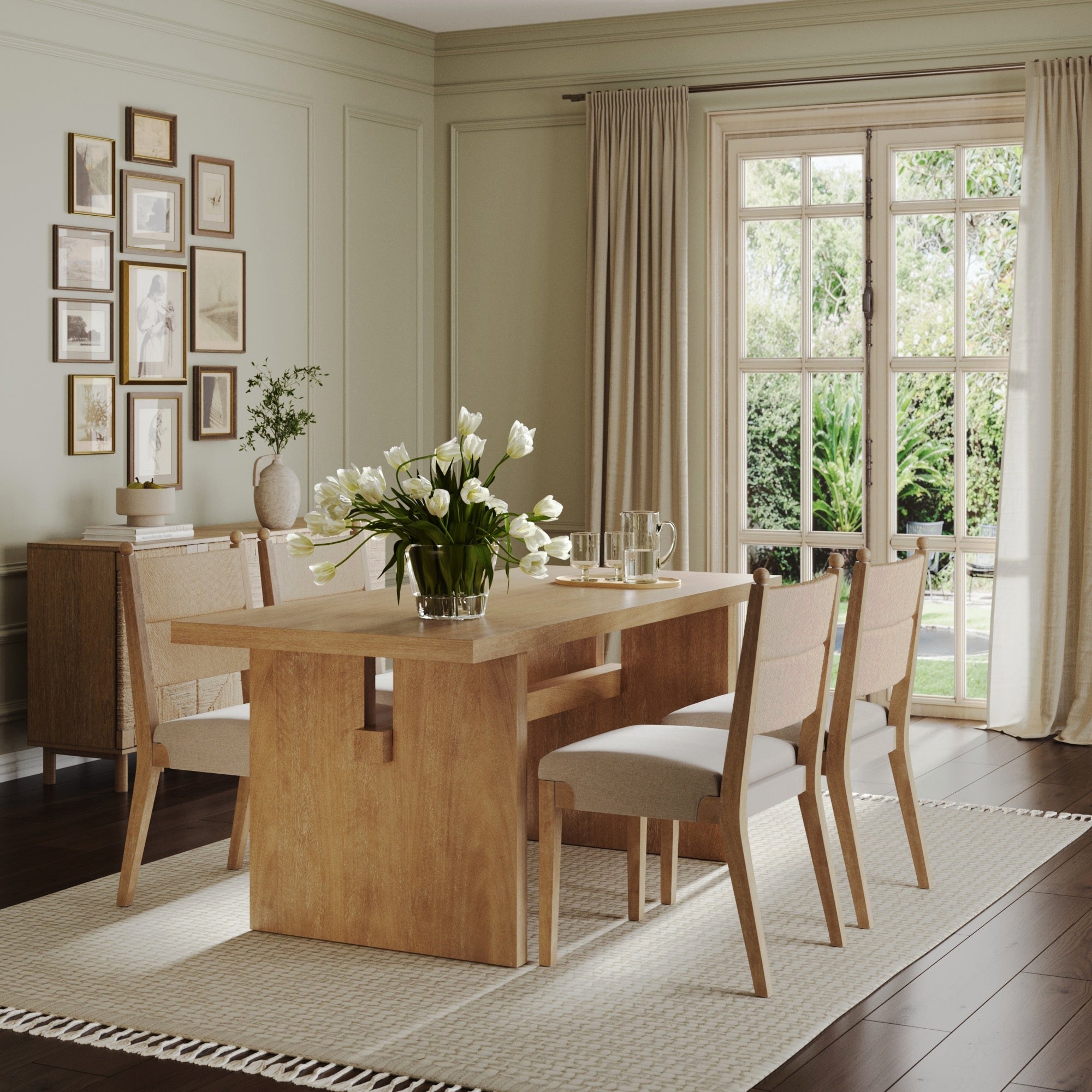 Cove Boho Solid Wood Dining Chair with Woven Seagrass Back and Upholstered Seat
