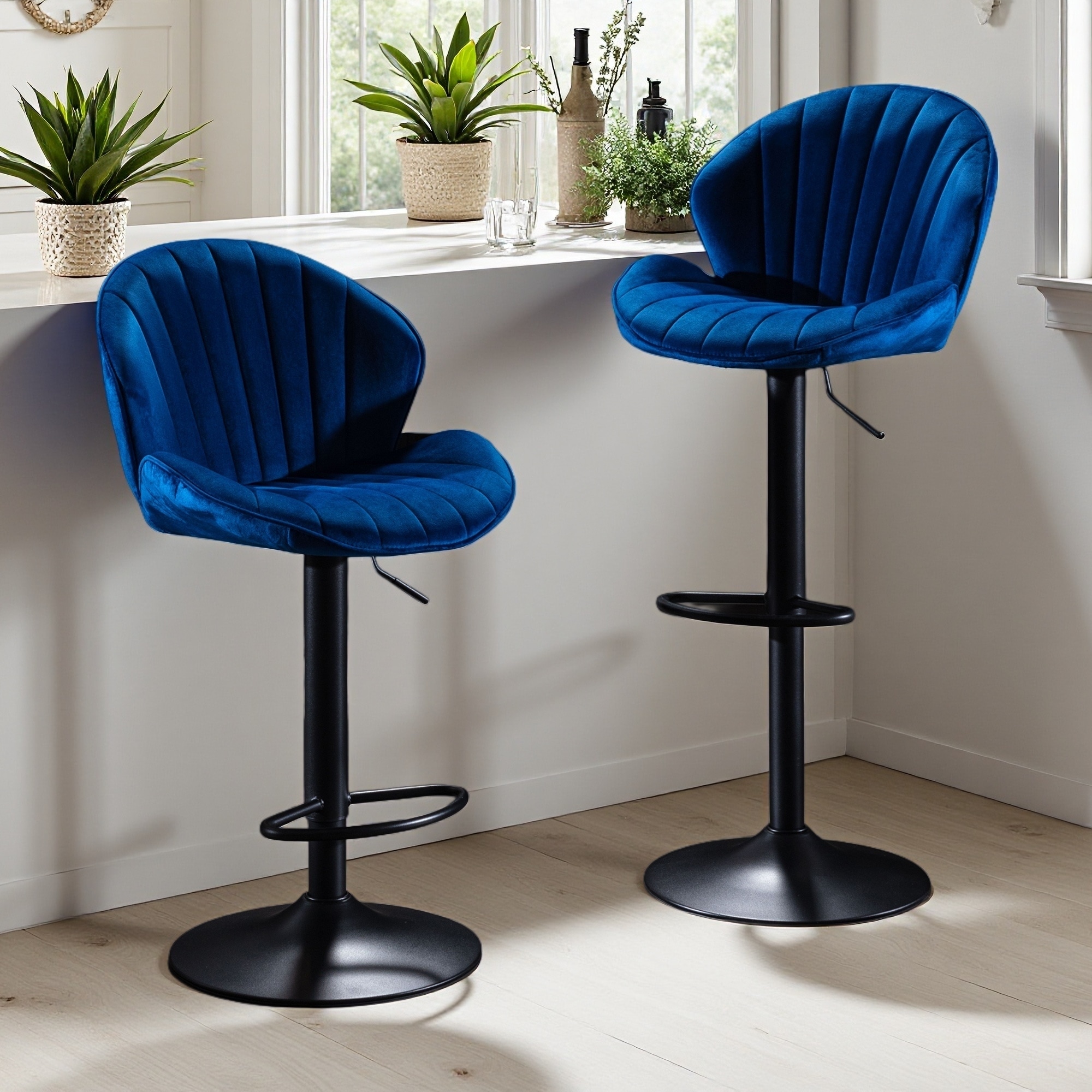 36"H Set of 2 Adjustable Bar Stools with Backrest, Footrest & Swivel Chrome Base-Counter Height Bar Chairs