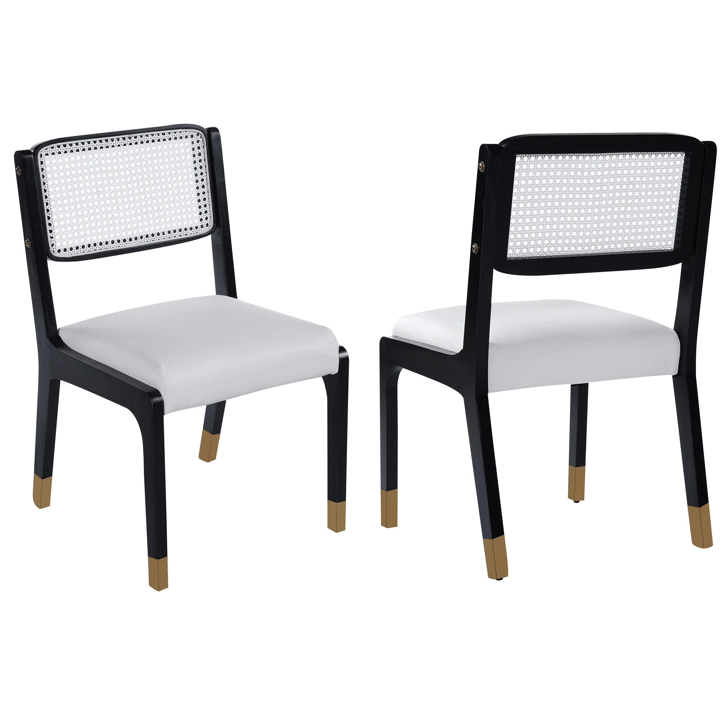 Dining Chair Set of 2 with Rattan Open Back, Wooden Frame Lounge Chair, Leather Upholstered Side Chair, Fashion Accent Chairs