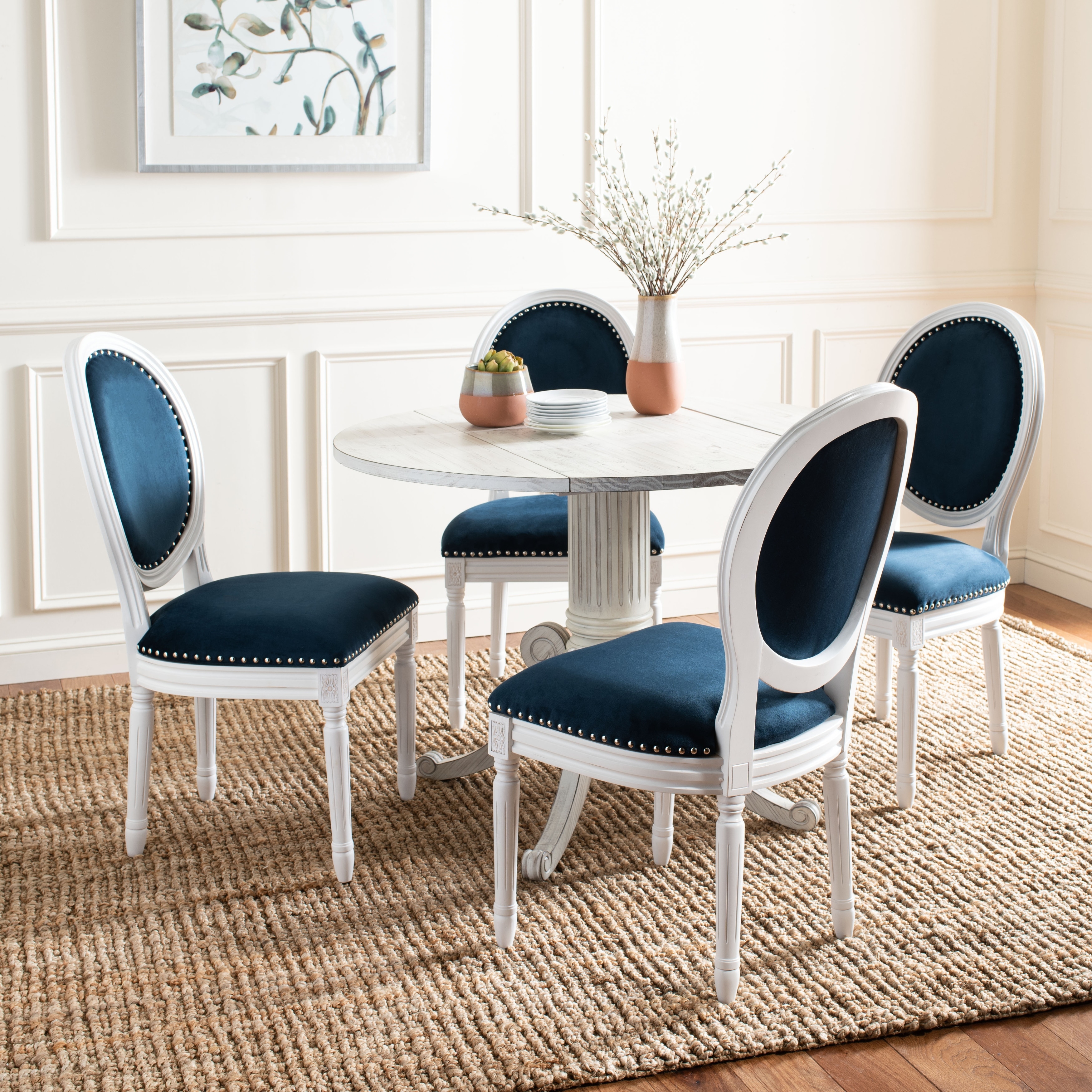 SAFAVIEH Dining Old World Holloway Navy Velvet Oval Dining Chairs (Set of 2) - 19.8" x 20" x 39"