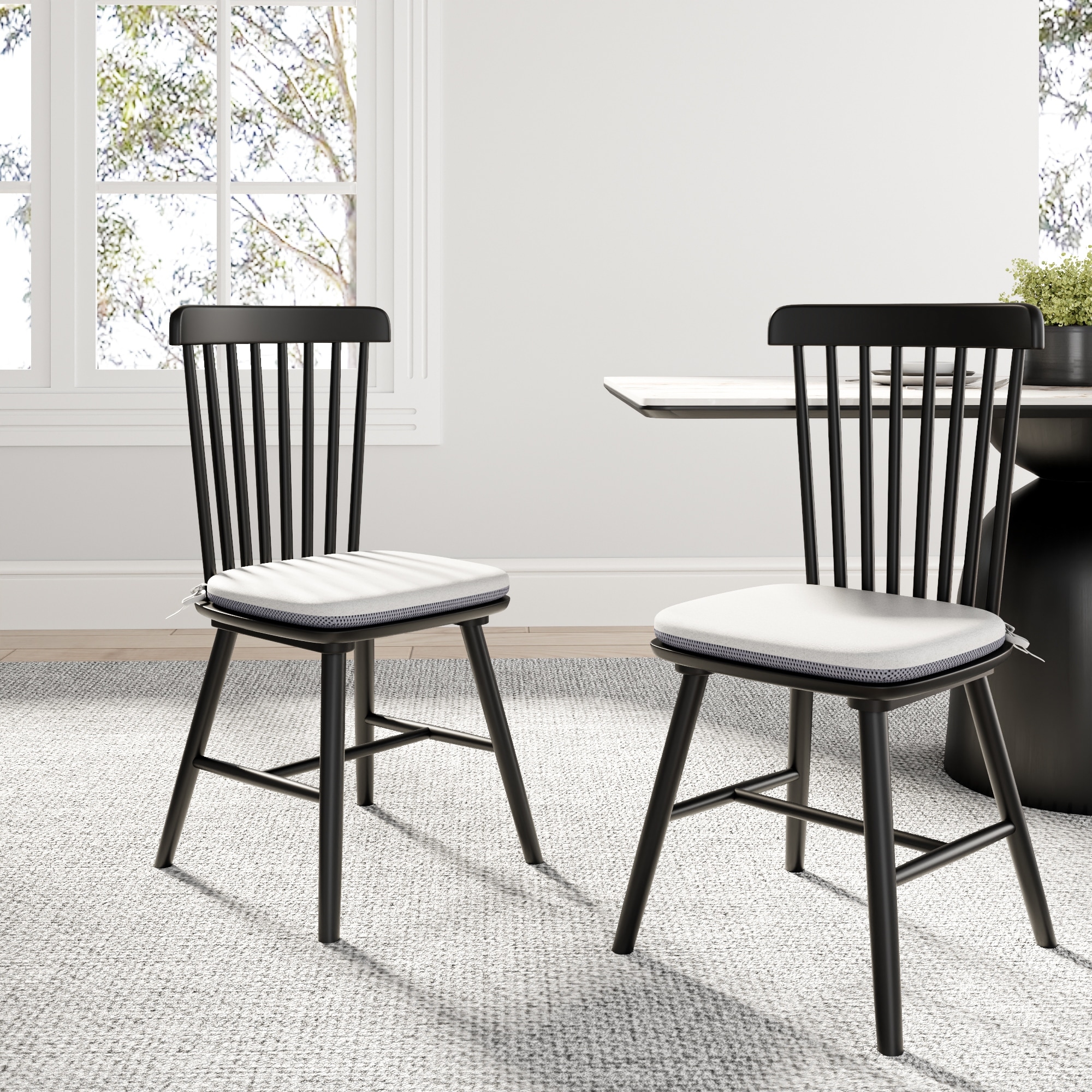 Farmhouse Kitchen Chairs (Pair) - Sturdy Solid Wood Construction with Cushioned Seats, Modern Windsor Back Design - Black