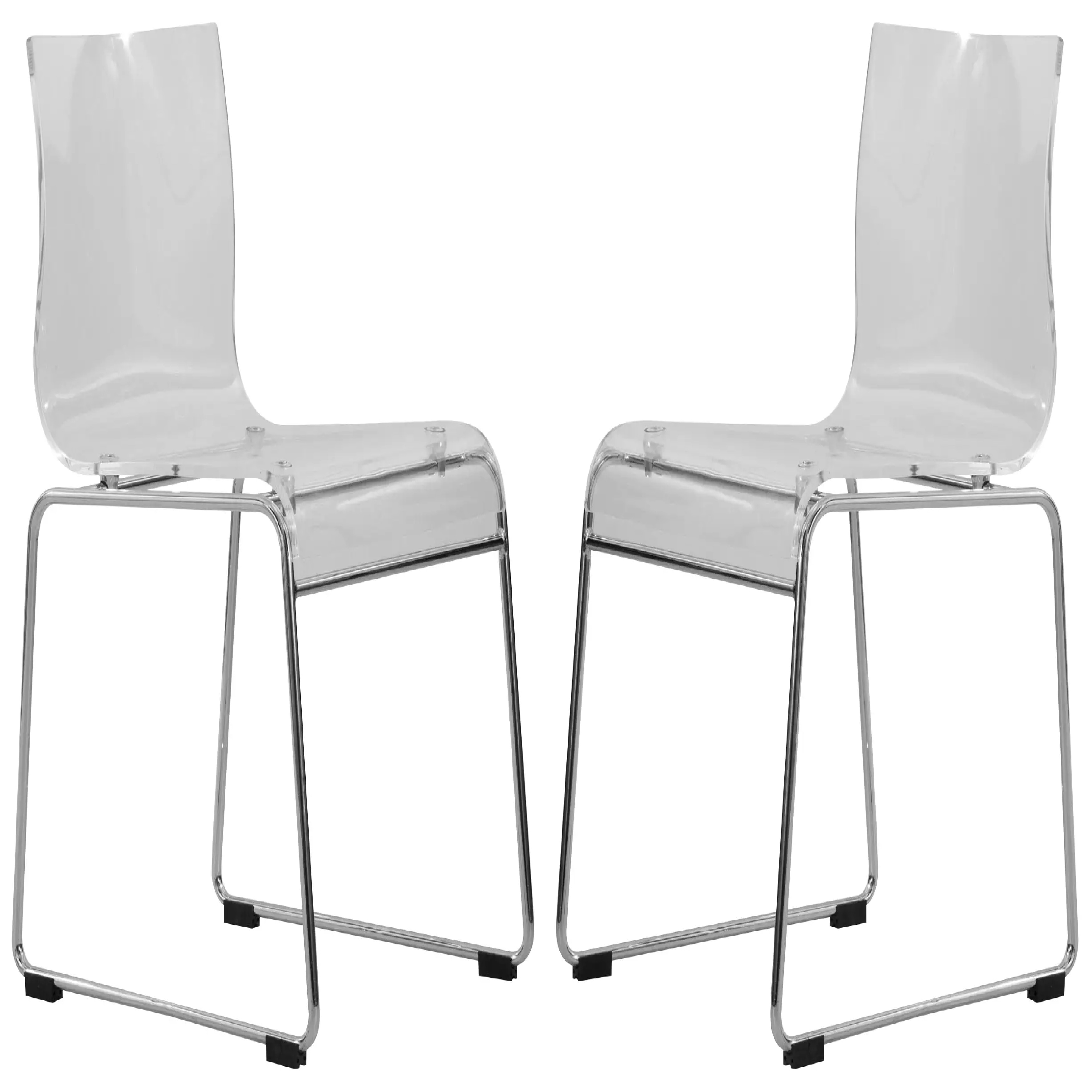 Lima Modern Contemporary Transparent Stackable Acrylic in Chrome Steel Dining Accent Side Chair Set of 2