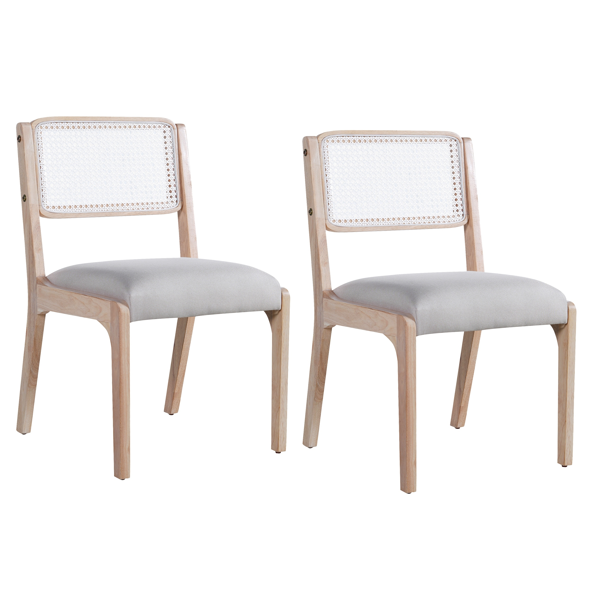 Dining Chair Set of 2 with Rattan Open Back, Wooden Frame Lounge Chair, Leather Upholstered Side Chair, Fashion Accent Chairs