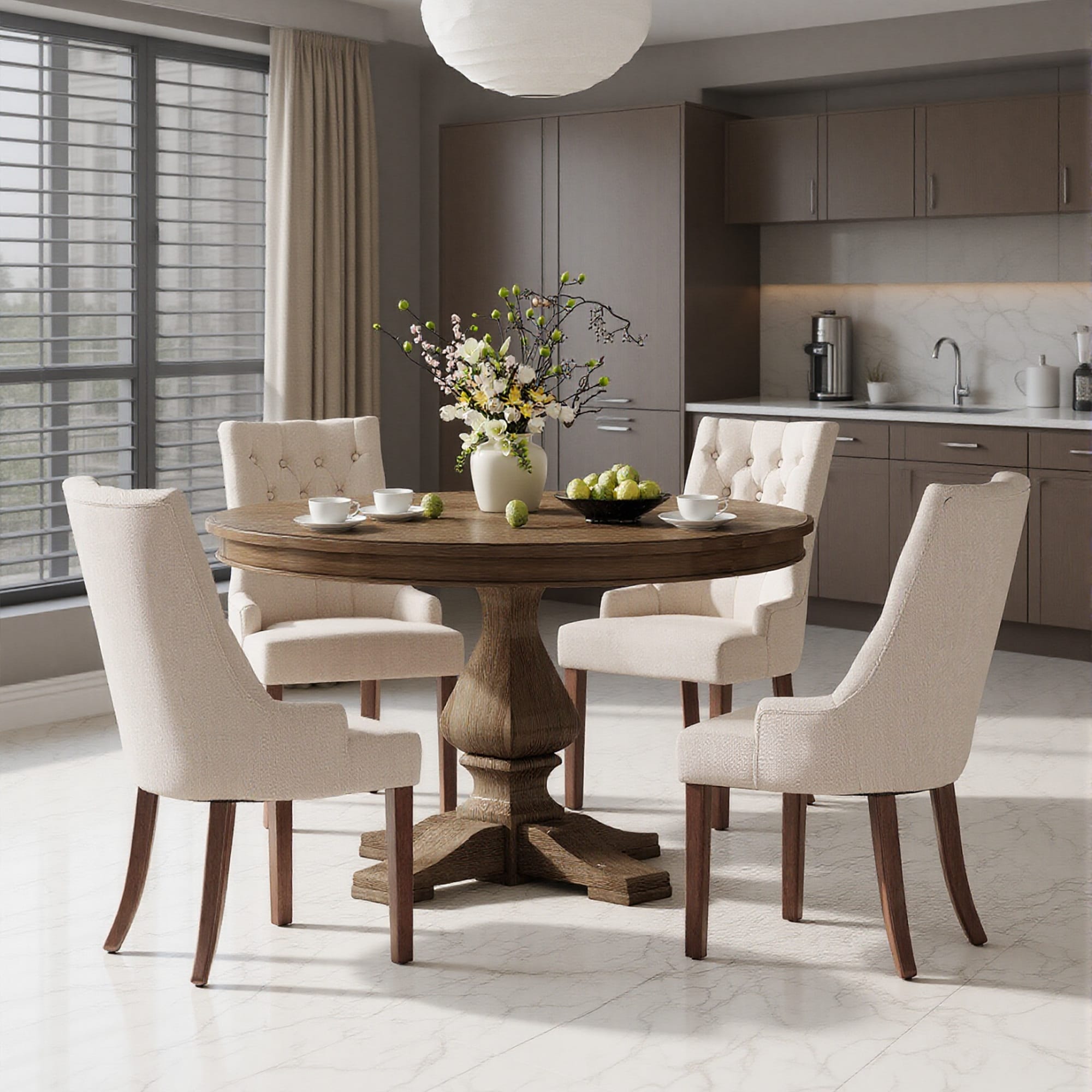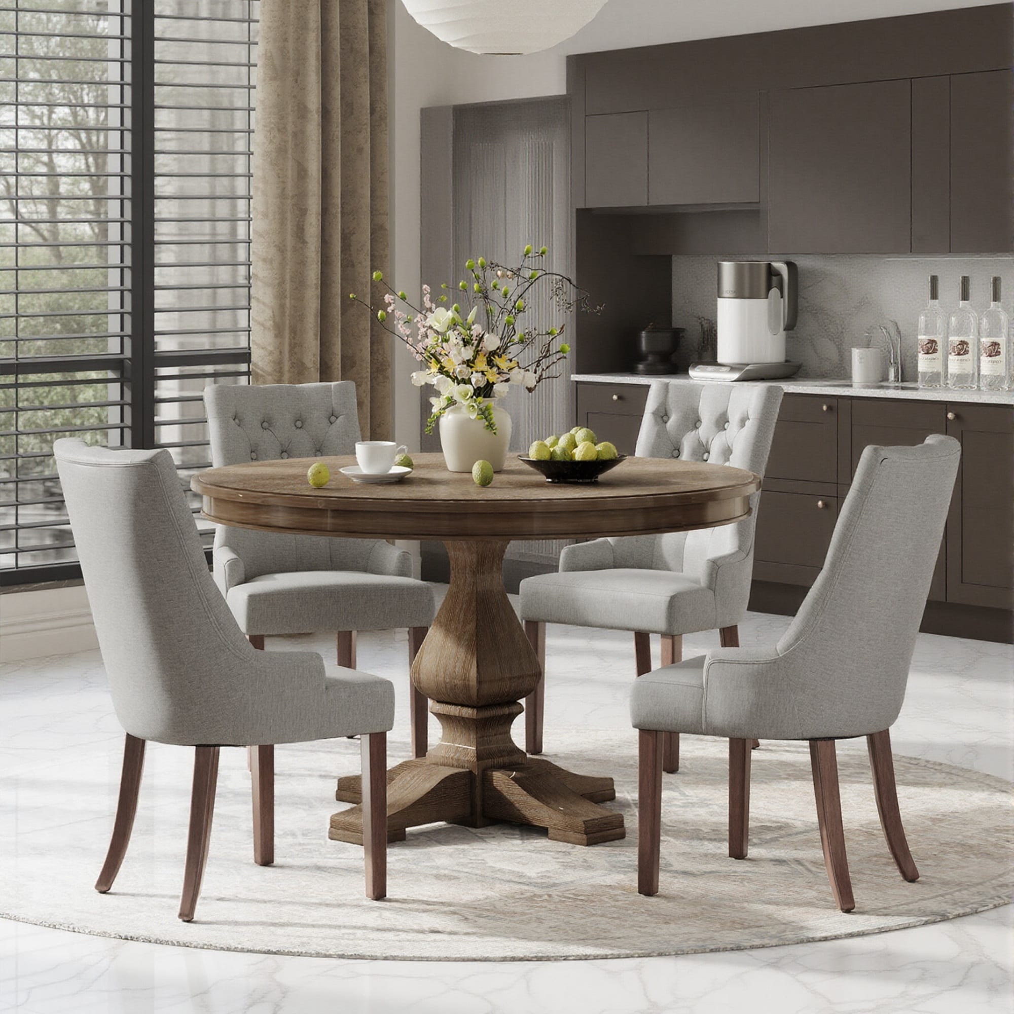Wingback Upholstered Dining Chairs, Fabric Side with Tufted Button