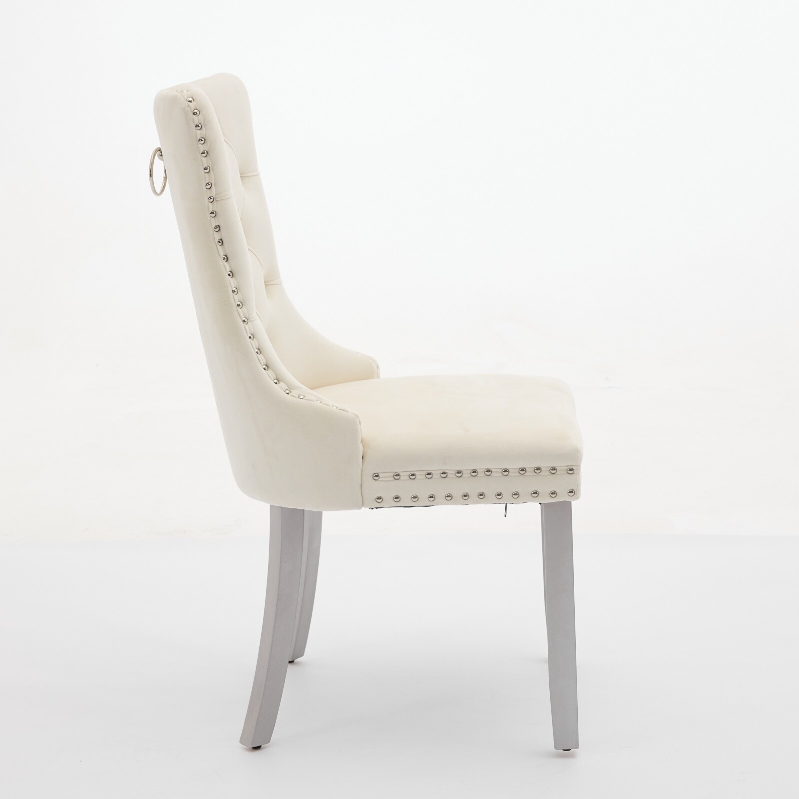 Velvet Upholstered Dining Chair with Wood Legs Nailhead Trim 2-Pcs